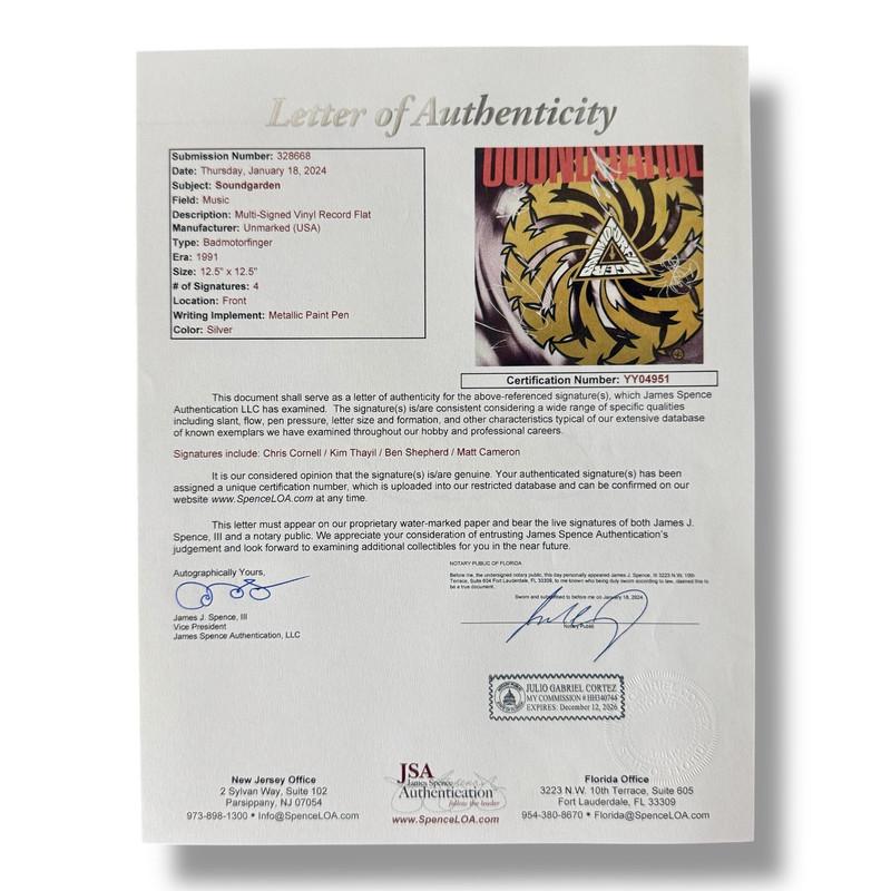 Soundgarden "Badmotorfinger" Custom Framed Vinyl Record Album Display Signed By (4) with Chris Cornell, Kim Thayil, Ben Shepherd & Matt Cameron (JSA)