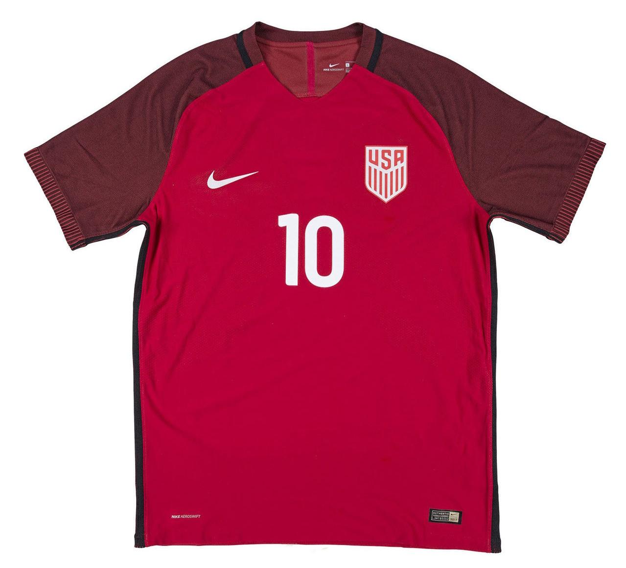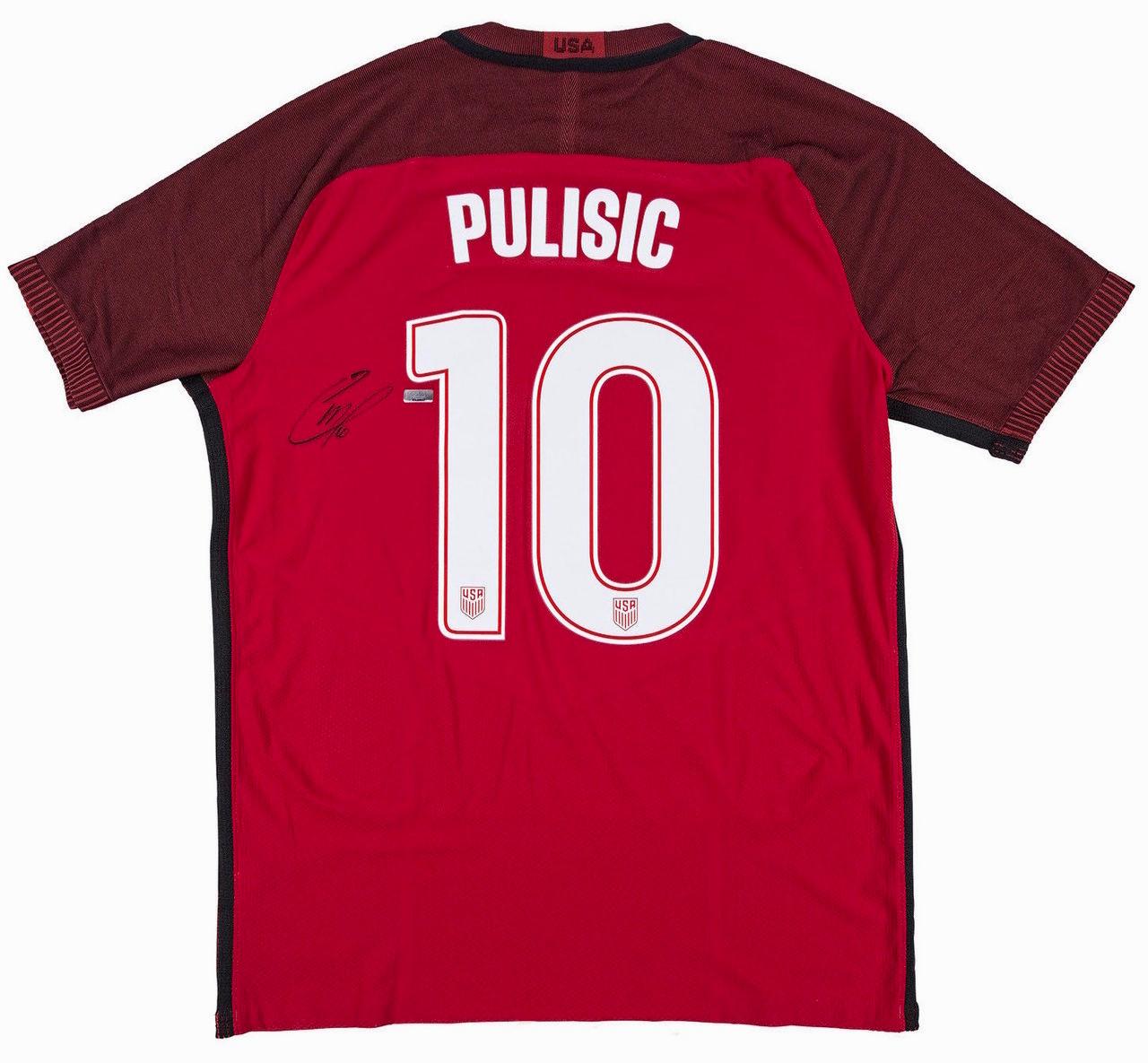 Nike authentic jersey. Everything is printed on, size L. Hand-signed by Christian Pulisic (Team USA).