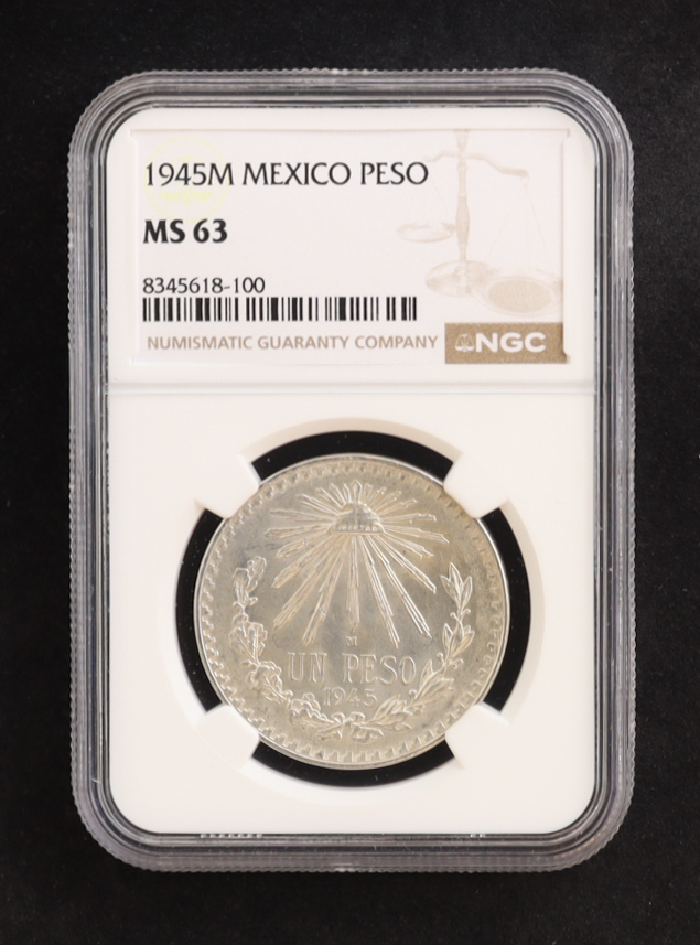 1945-M Mexico Peso - .720 Silver (NGC MS63)