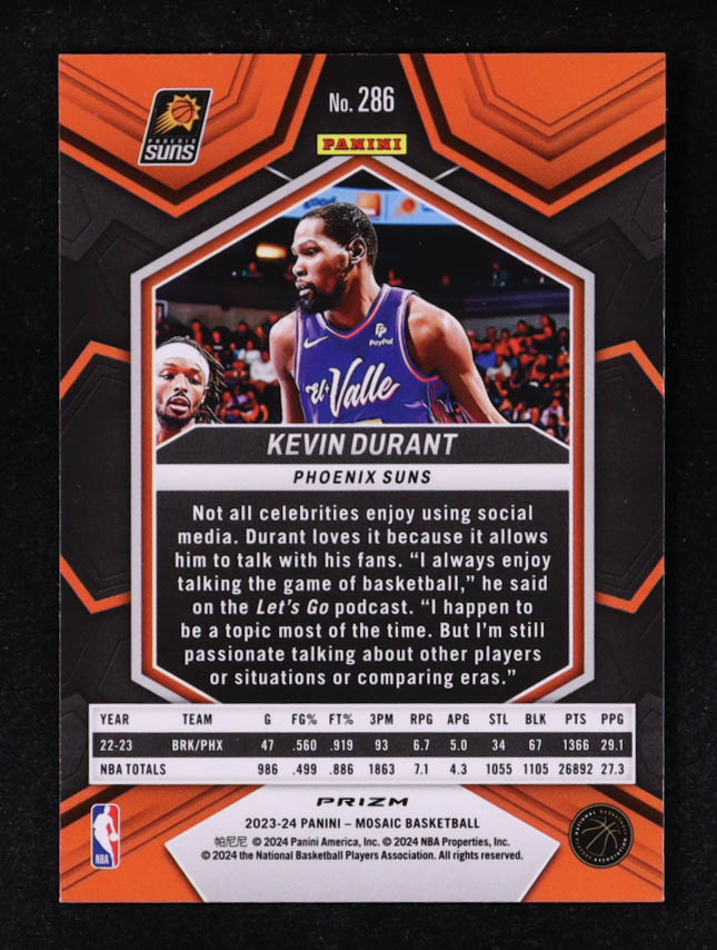 Kevin Durant 2023-24 Panini Mosaic Mosaic Reactive Blue #286 City Edition