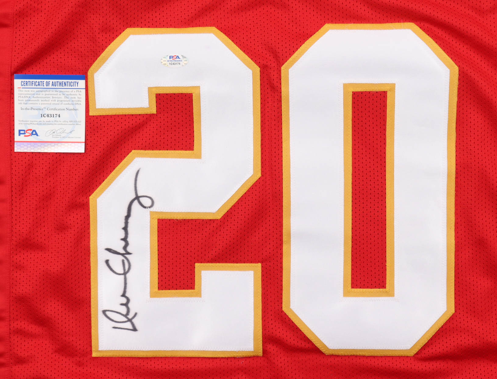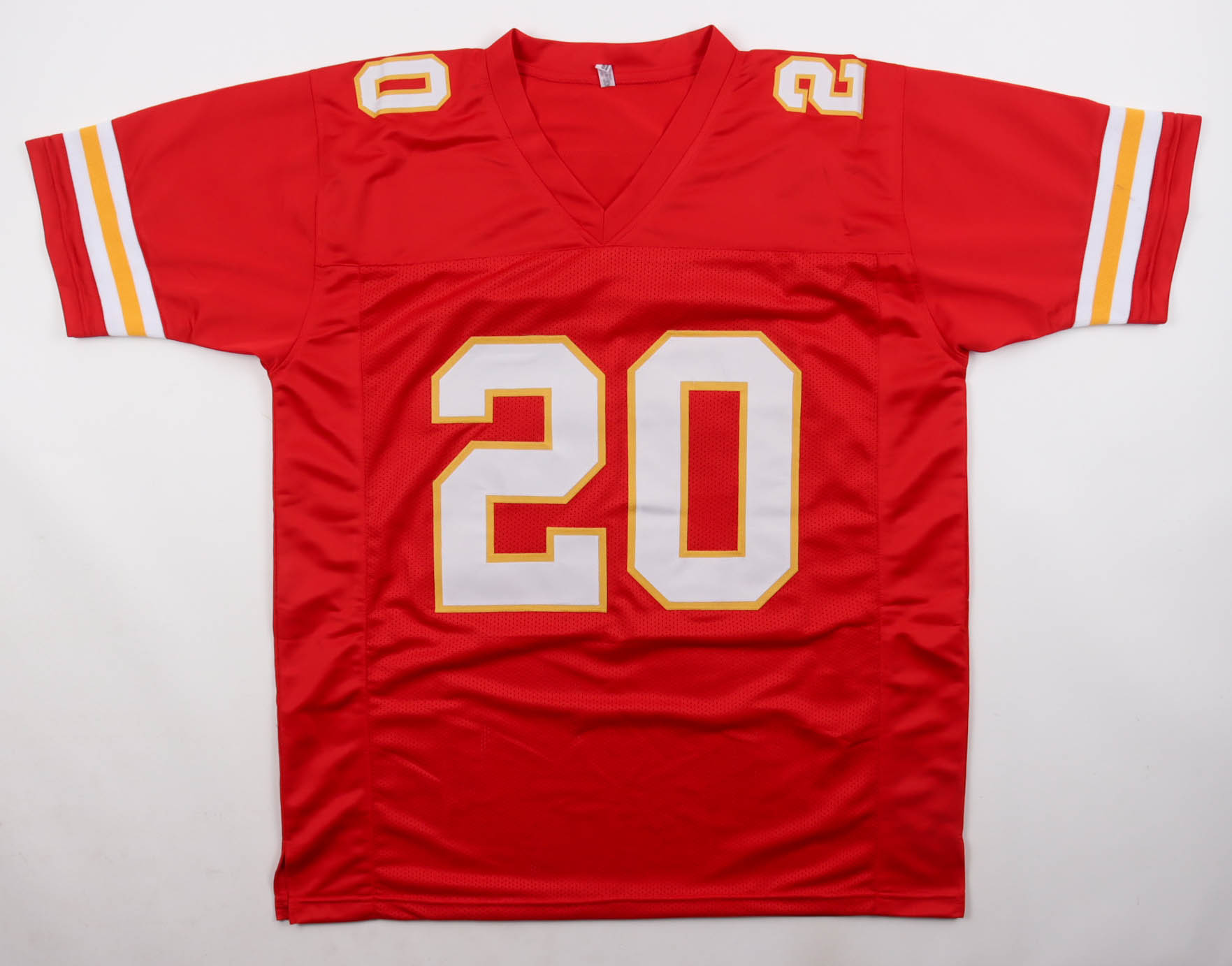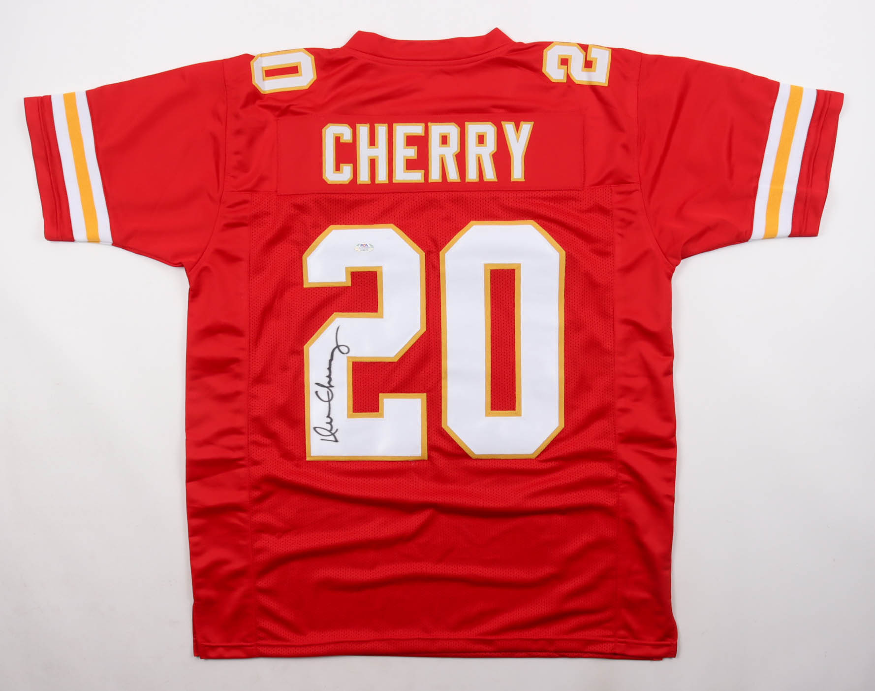 Custom jersey with everything sewn on, size XL. Hand-signed by Deron Cherry (Kansas City Chiefs).