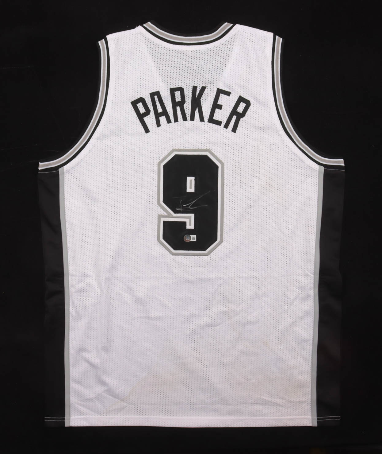 Custom jersey with everything sewn on, size XL. Hand-signed by Tony Parker (San Antonio Spurs, HOF). Please note, the bottom of the jersey is stained.