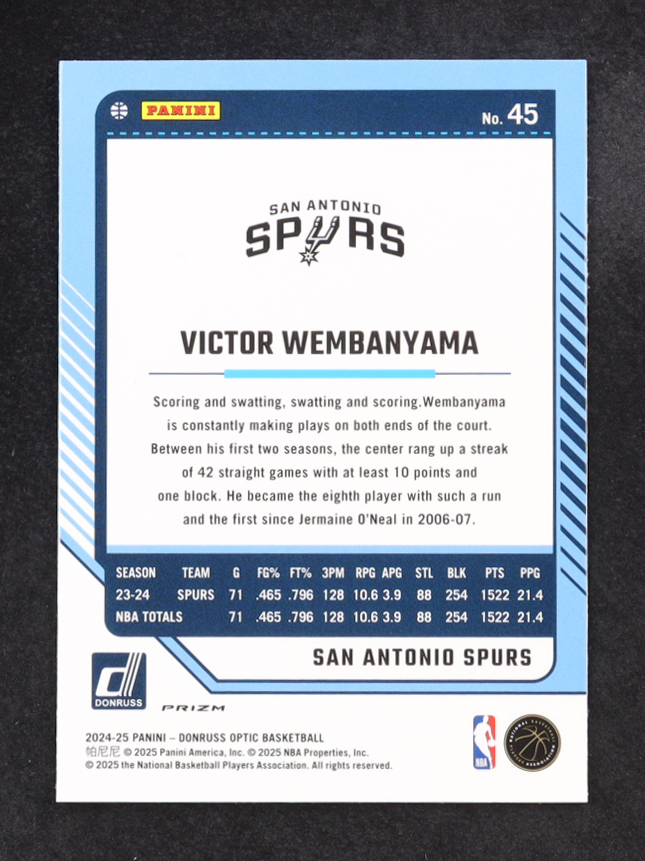 VIctor Wembanyama 2024-25 Panini Donruss Optic Pink Hyper Prizm #45