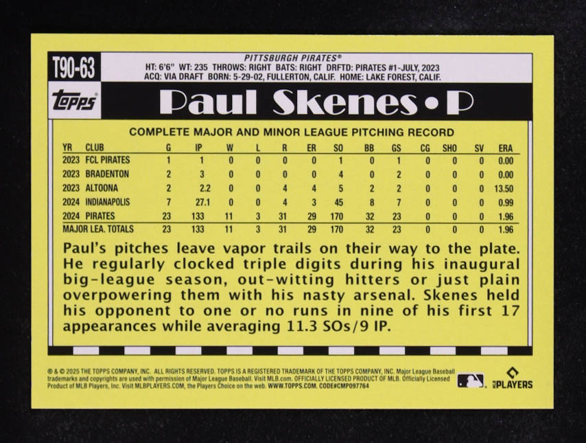 Paul Skenes 2025 Topps '90 Topps #T9063