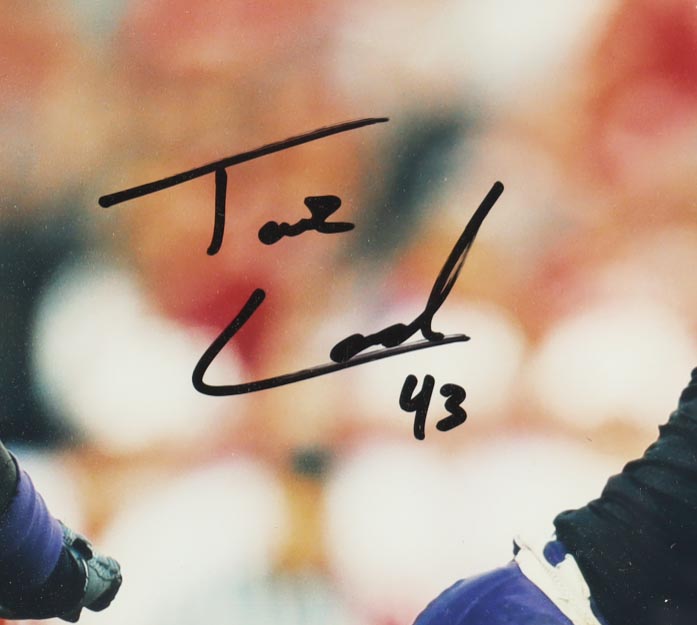 Custom frame measures approximately 22" x 26" in size and features a photo that has been hand-signed by Tank Carder.