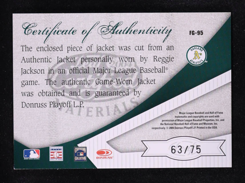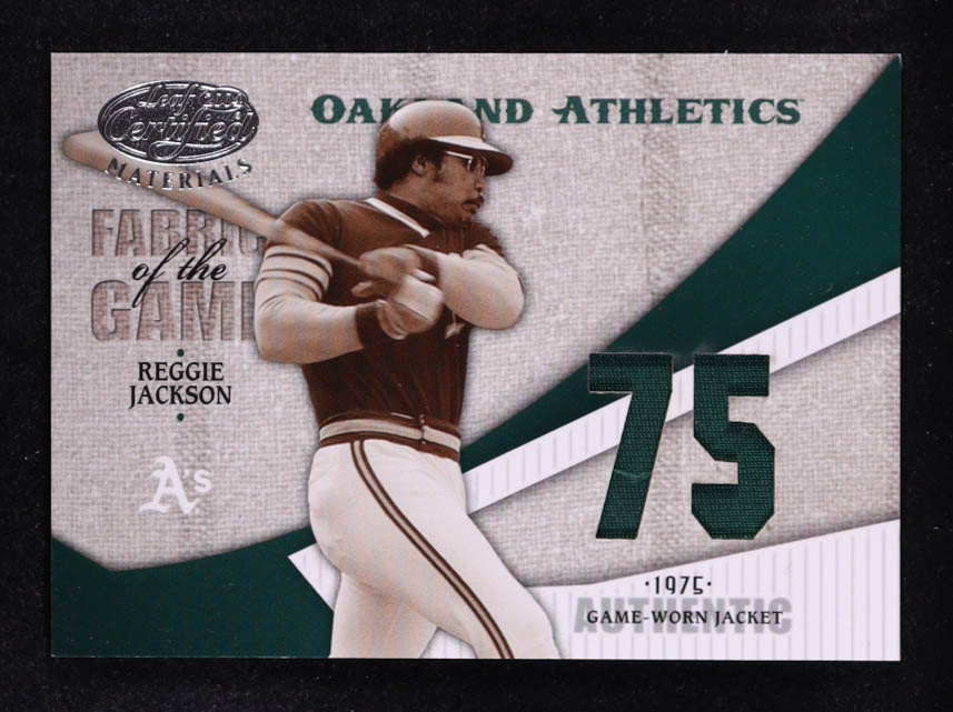 Reggie Jackson 2004 Leaf Certified Materials Fabric of the Game Jersey Year #95 A's Jacket #63/75