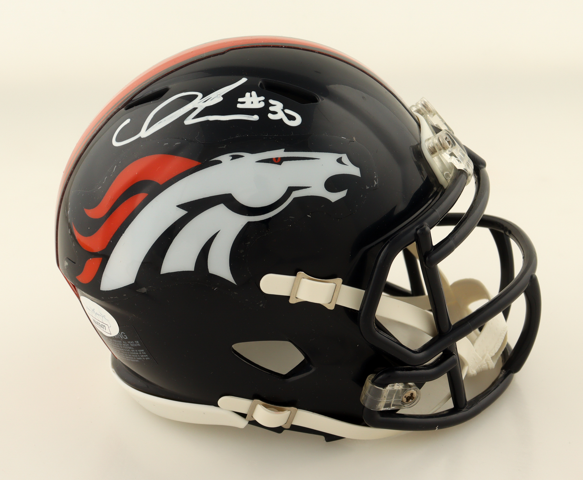 Riddell Denver Broncos Speed mini helmet. Hand-signed by Caden Sterns.