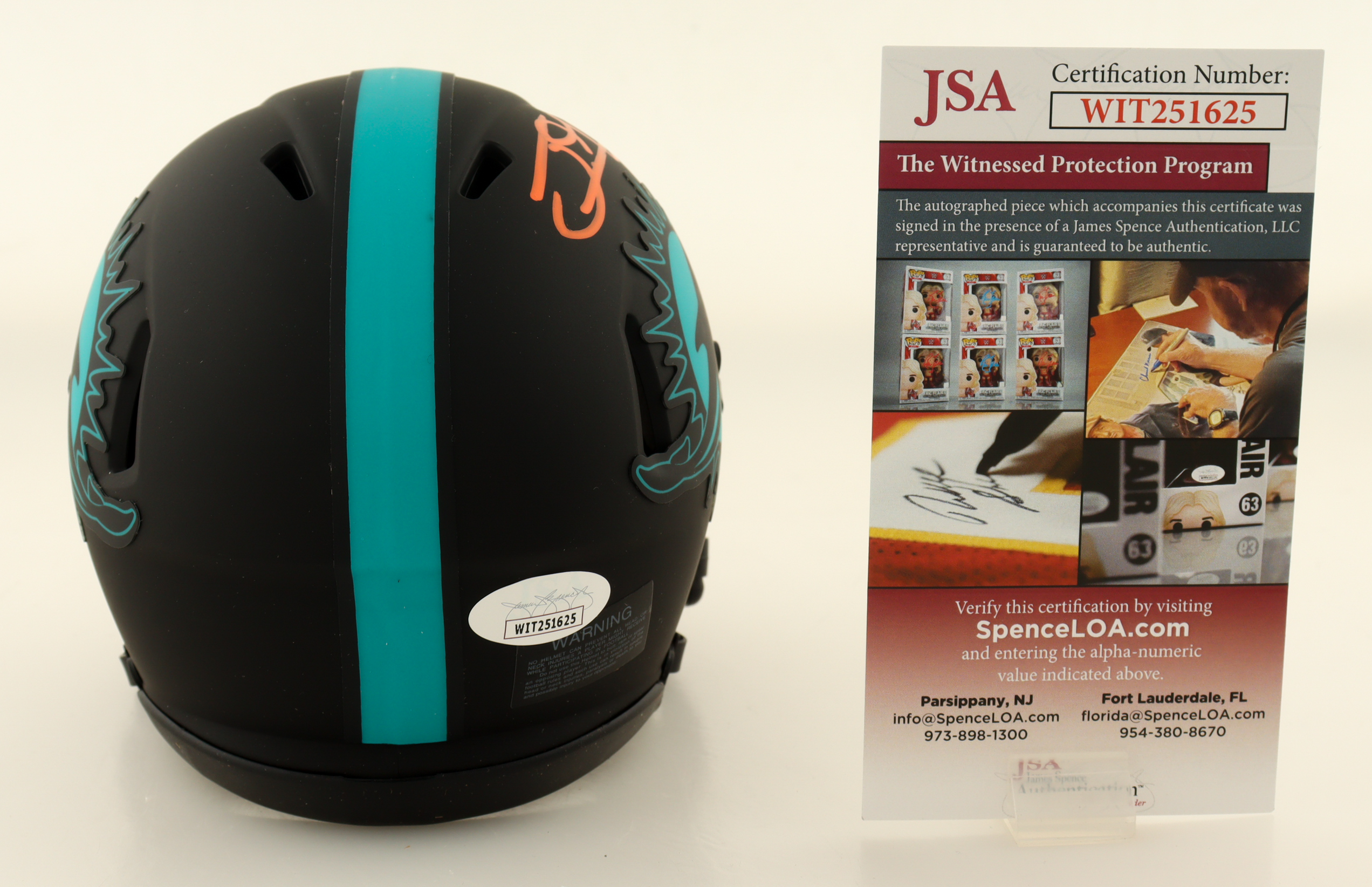 Riddell Miami Dolphins Eclipse Alternate speed mini helmet. Hand-signed by Jakeem Grant.