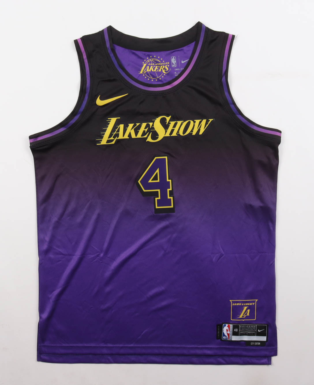 Nike authentic jersey with everything pressed on, size 48. Hand-signed by Dalton Knecht (Los Angeles Lakers).