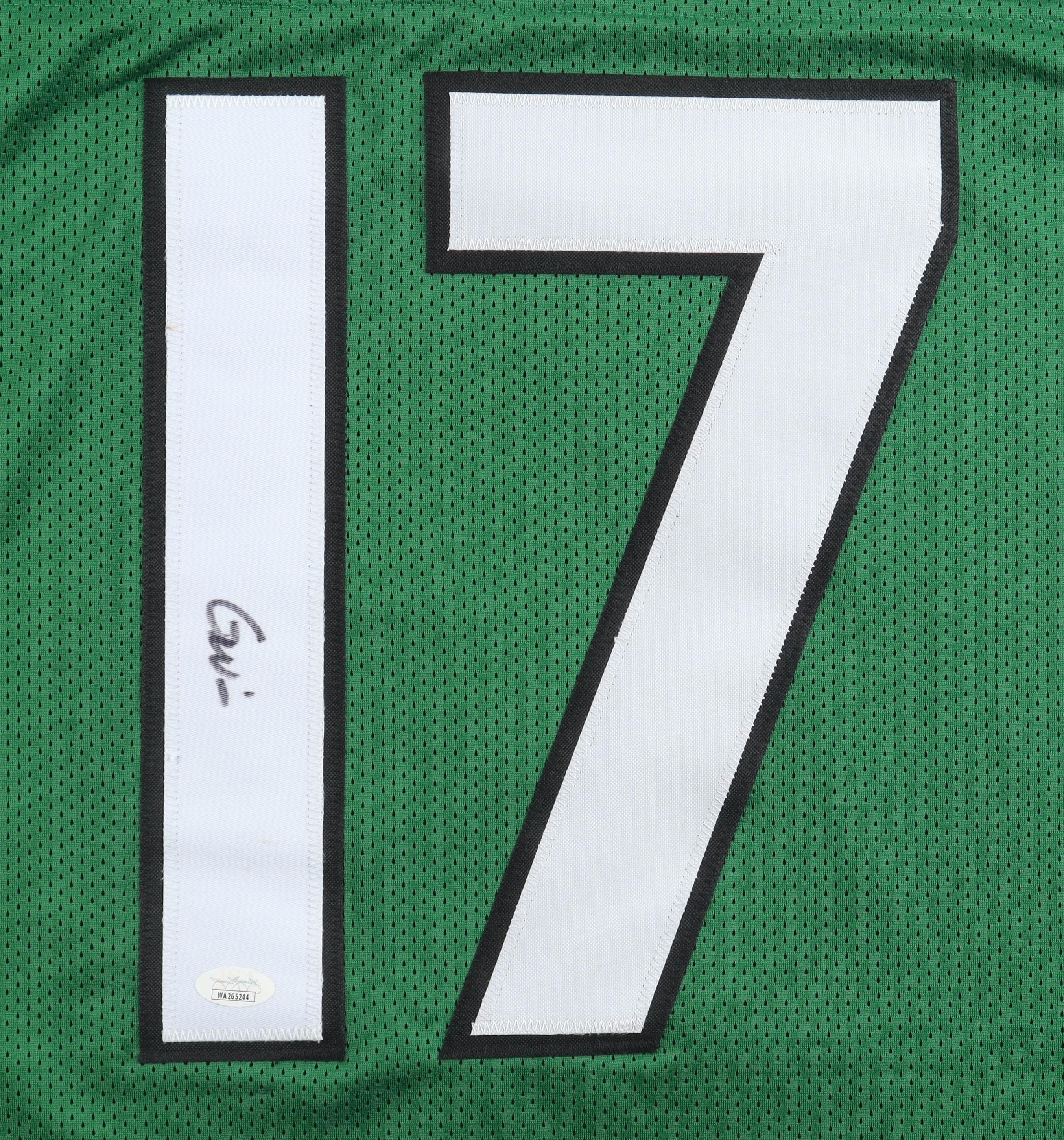 Custom jersey. Everything is sewn on, size XL. Hand-signed by Garrett Wilson.