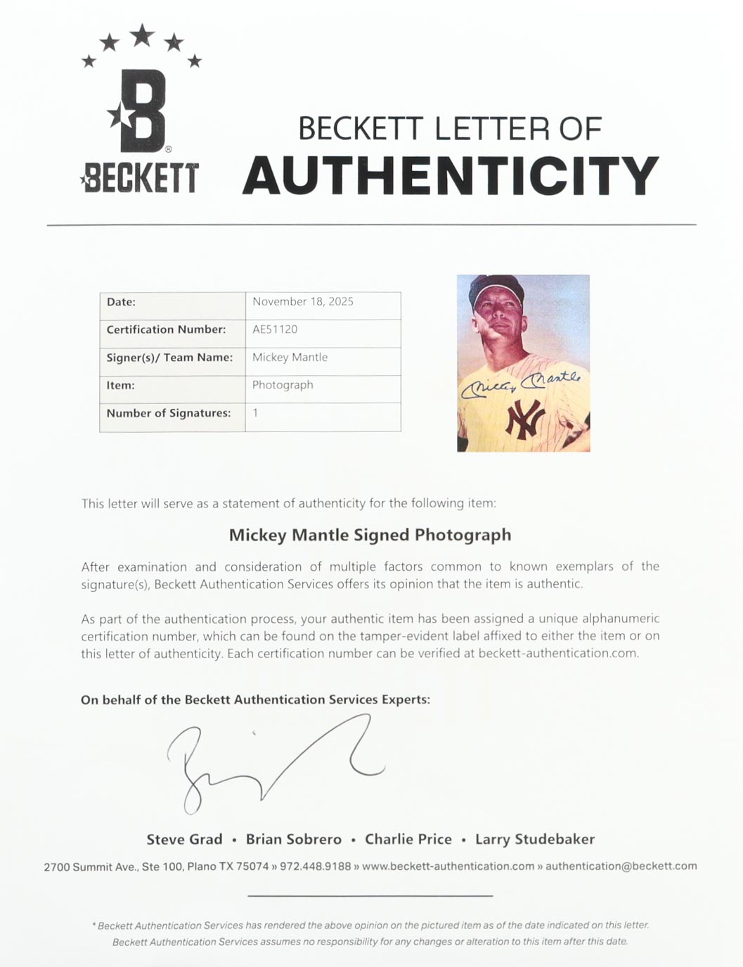 Mickey Mantle Signed Yankees 8x10 Photo (Beckett)