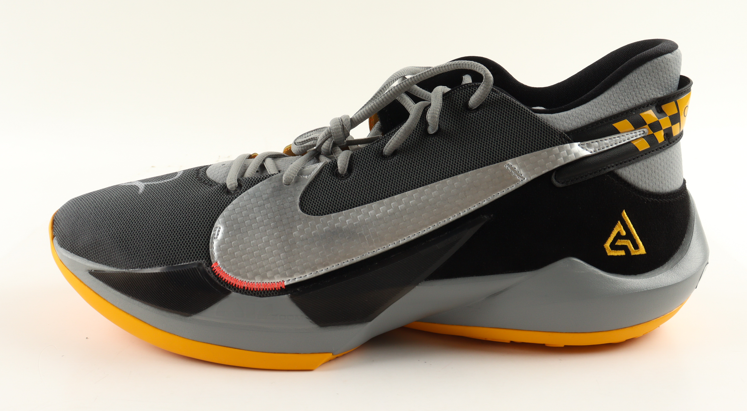 Nike Zoom Freak 2 Taxi Basketball Shoe has been hand-signed by Giannis Antetokounmpo (Milwaukee Bucks).