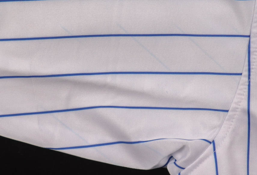 Custom jersey, everything is sewn on, size XL. Hand-signed by Nico Hoerner. Please note, there is blue staining on the right sleeve. See photos regarding the condition of the item.