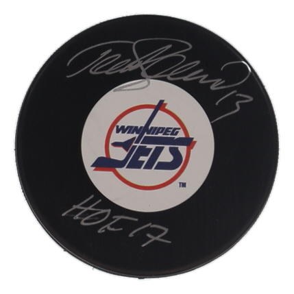 Teemu Selanne Signed Jets Logo Hockey Puck Inscribed "HOF 17" (Cojo)