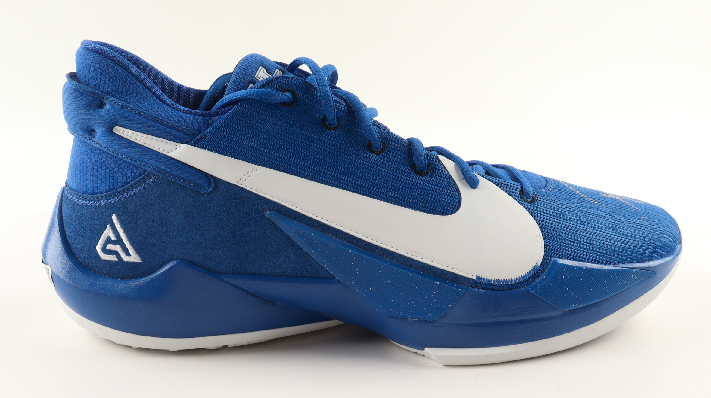 Nike Zoom Freak 2 SE (Special Edition) "Signal Blue" Basketball Shoe has been hand-signed by Giannis Antetokounmpo (Milwaukee Bucks).