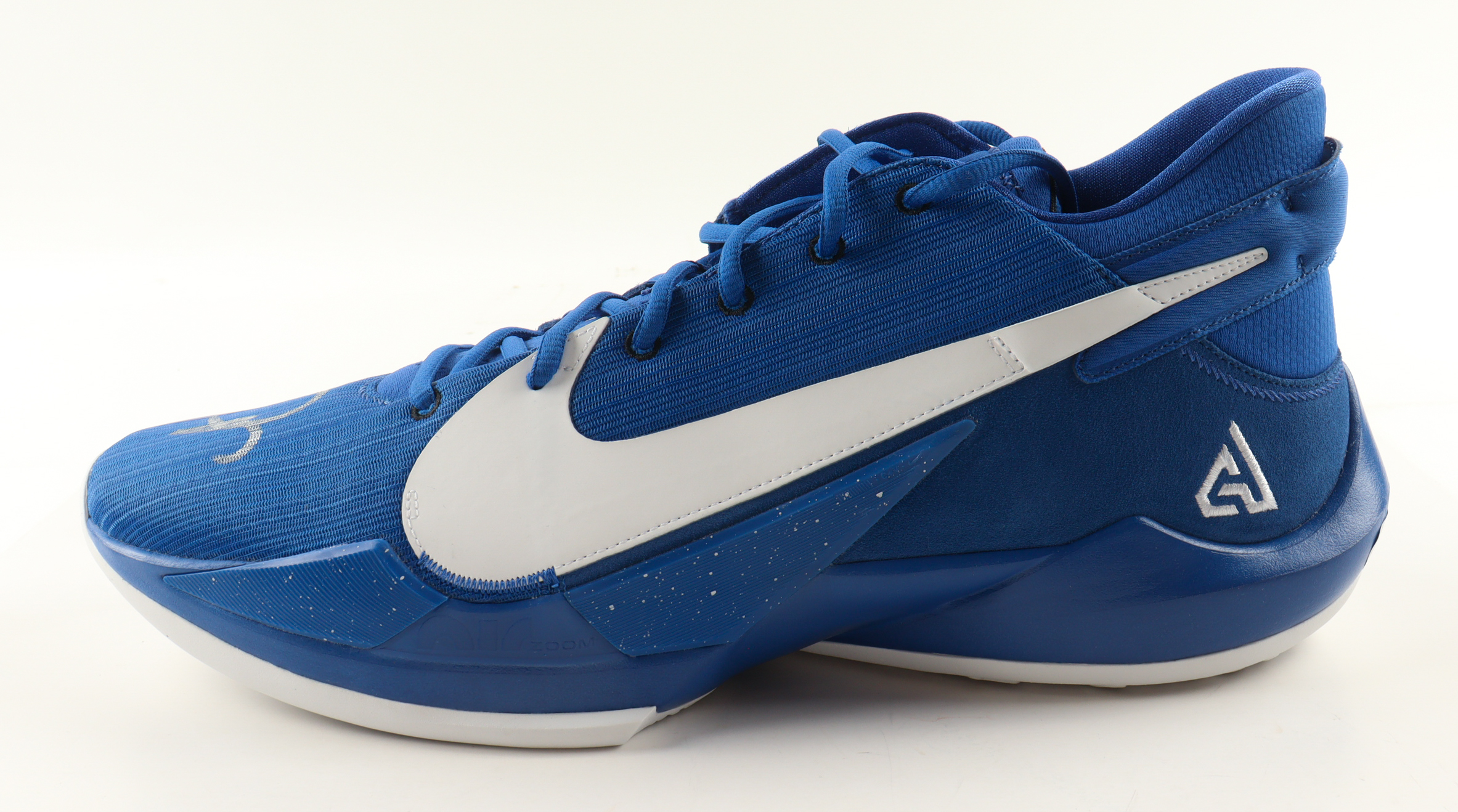 Nike Zoom Freak 2 SE (Special Edition) "Signal Blue" Basketball Shoe has been hand-signed by Giannis Antetokounmpo (Milwaukee Bucks).