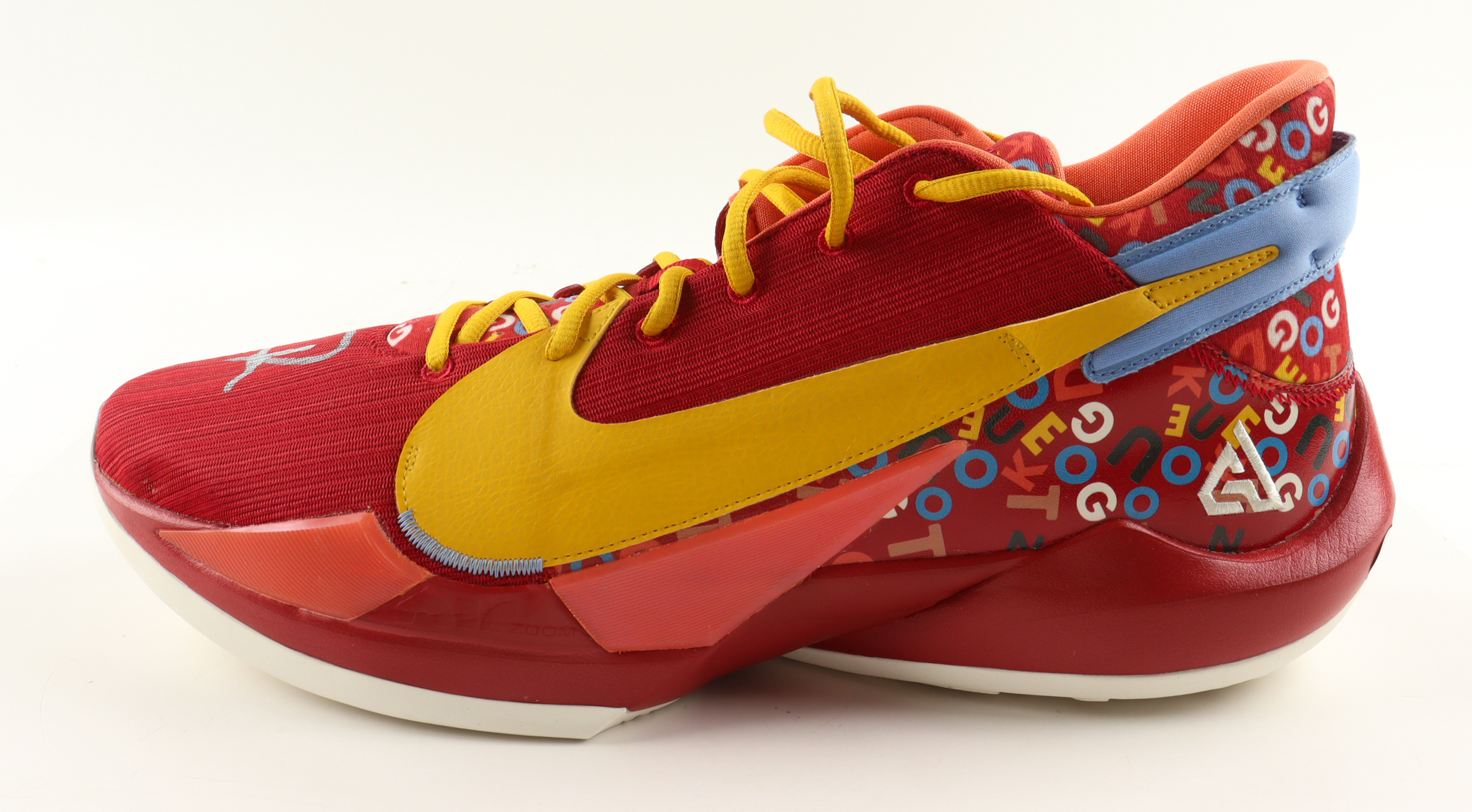 Nike Zoom Freak 2 Basketball Shoe has been hand-signed by Giannis Antetokounmpo (Milwaukee Bucks).