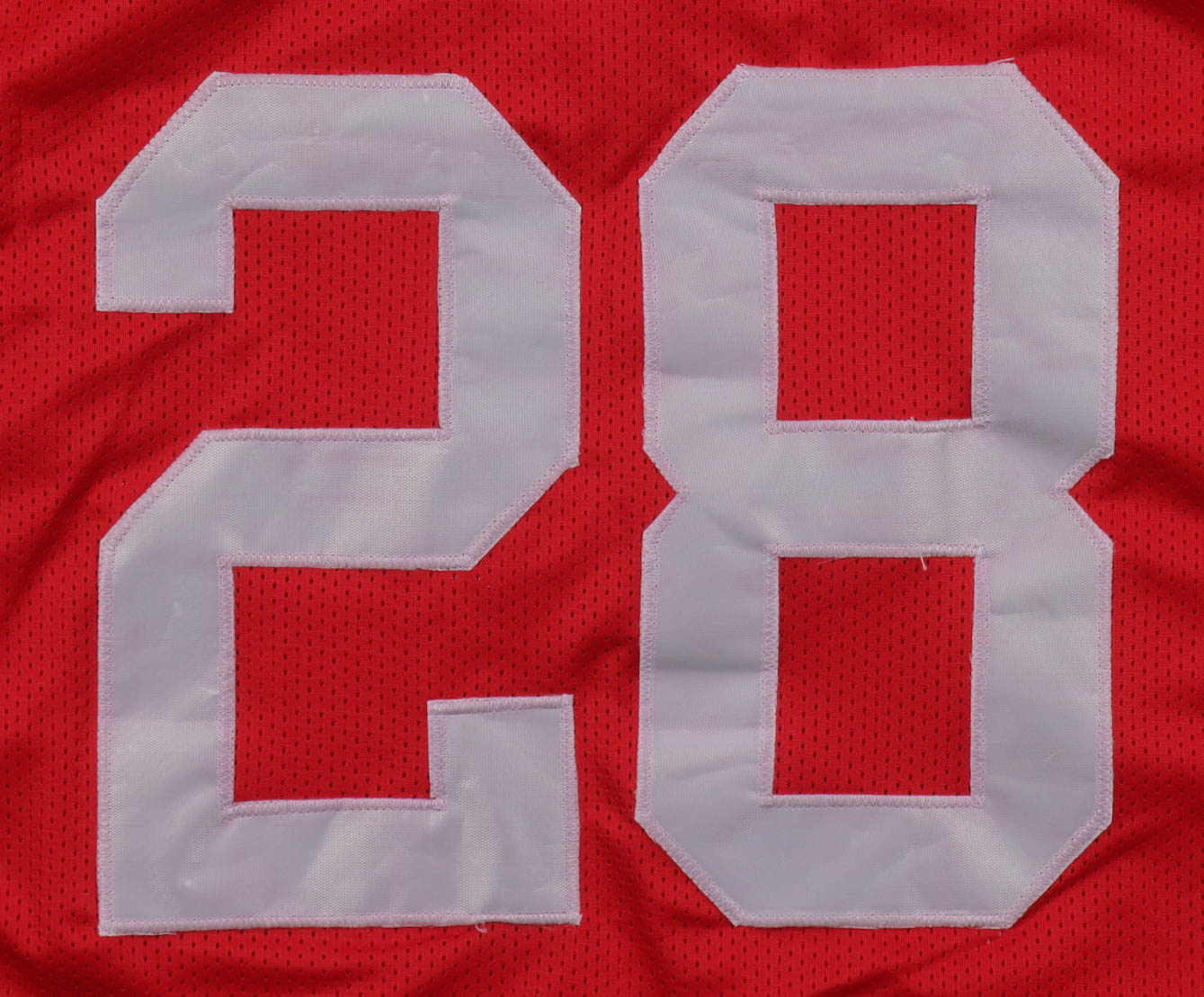 Custom jersey with everything sewn on, size XL. Hand-signed by Miyan Williams. Please note, glue is visible through the jersey numbers and the signature has bled.