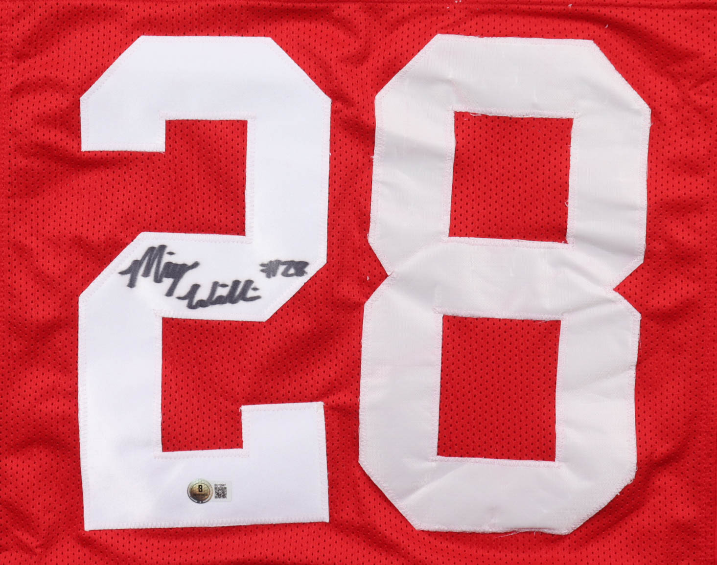Custom jersey with everything sewn on, size XL. Hand-signed by Miyan Williams. Please note, glue is visible through the jersey numbers and the signature has bled.