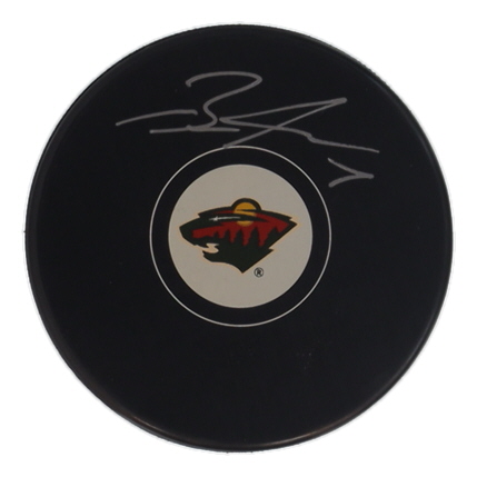 Brock Faber Signed Wild Logo Hockey Puck (Cojo)