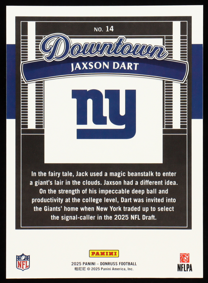 Jaxson Dart 2025 Donruss Downtown! Oversize #14 RC
