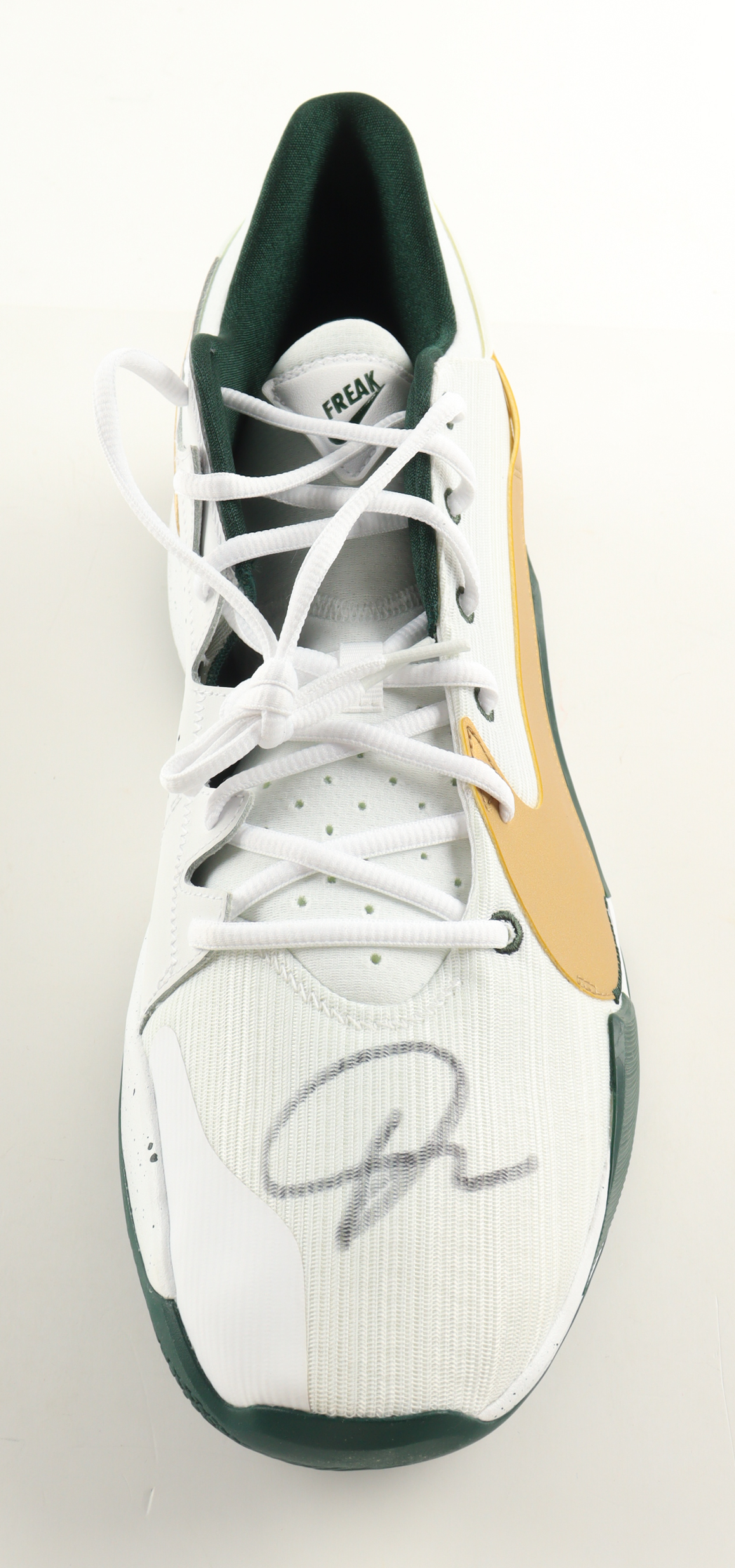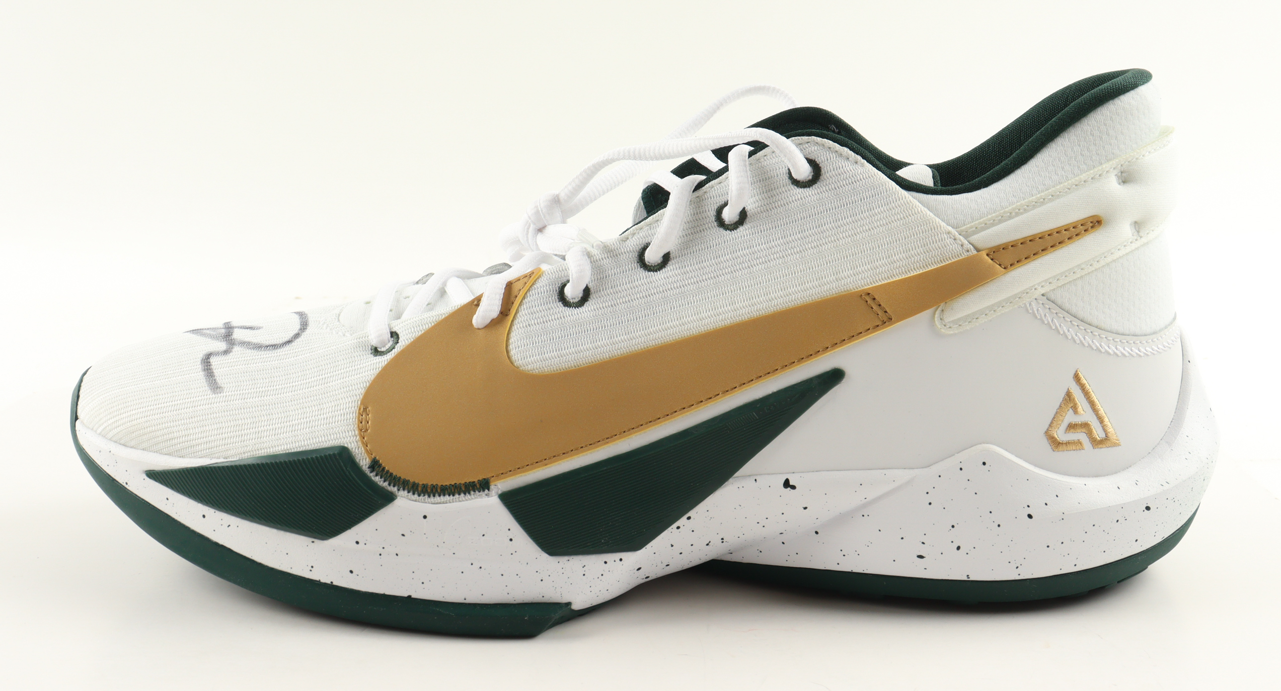 Nike Zoom Freak 2 "Michigan State" Basketball Shoe has been hand-signed by Giannis Antetokounmpo (Milwaukee Bucks).