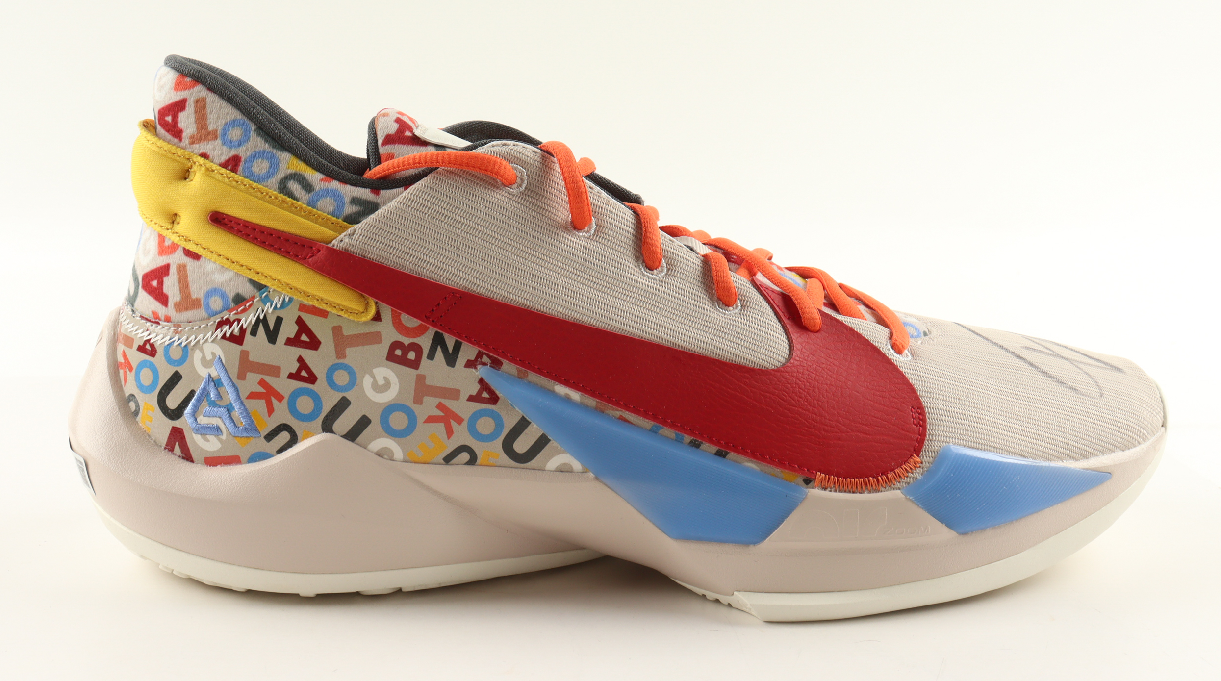 Nike Zoom Freak 2 "Letter Bro" Basketball Shoe has been hand-signed by Giannis Antetokounmpo (Milwaukee Bucks).