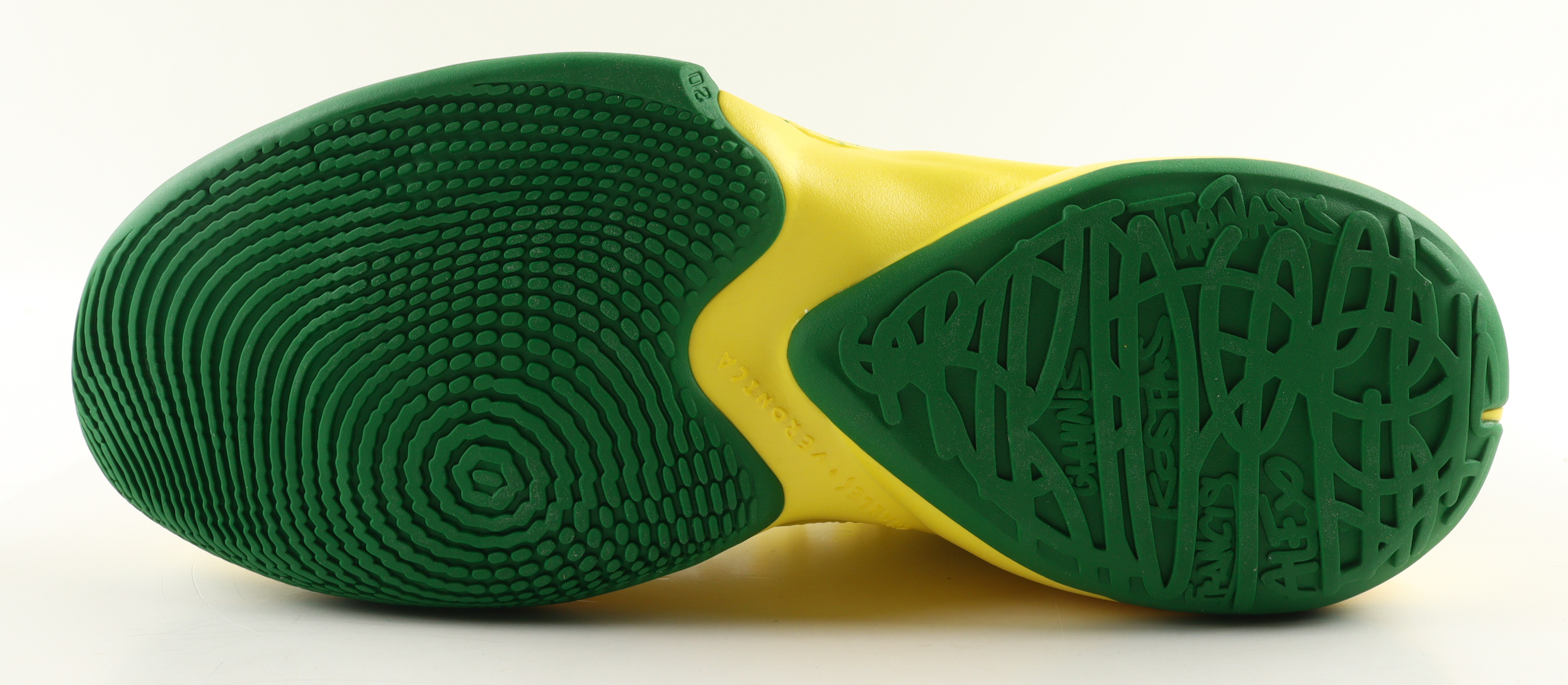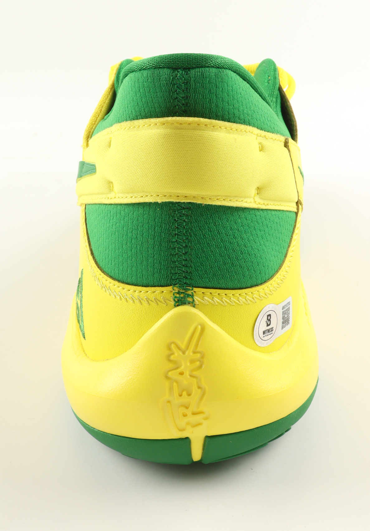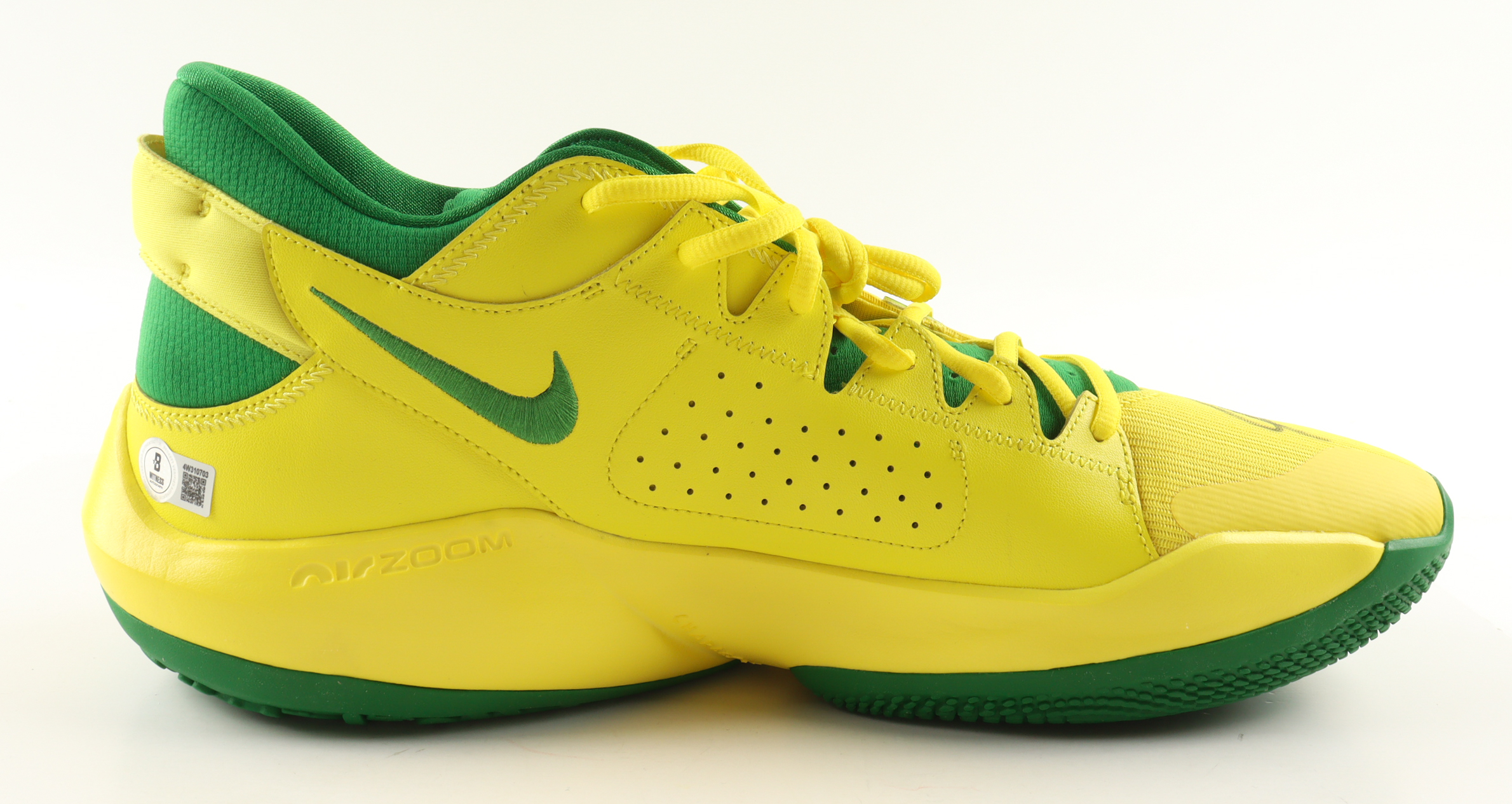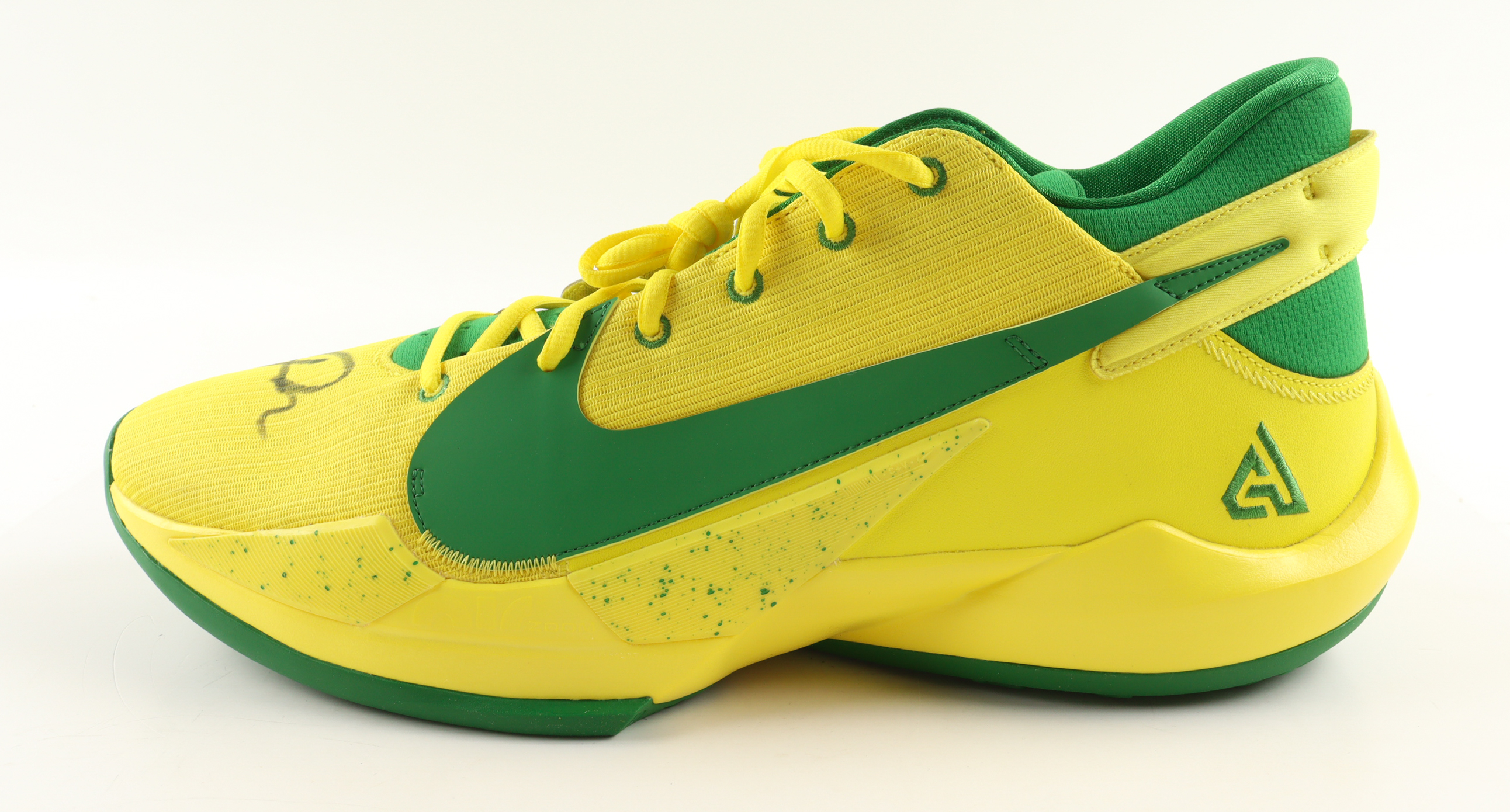 Nike Zoom Freak 2 "Oregon Alternate" Basketball Shoe has been hand-signed by Giannis Antetokounmpo (Milwaukee Bucks).
