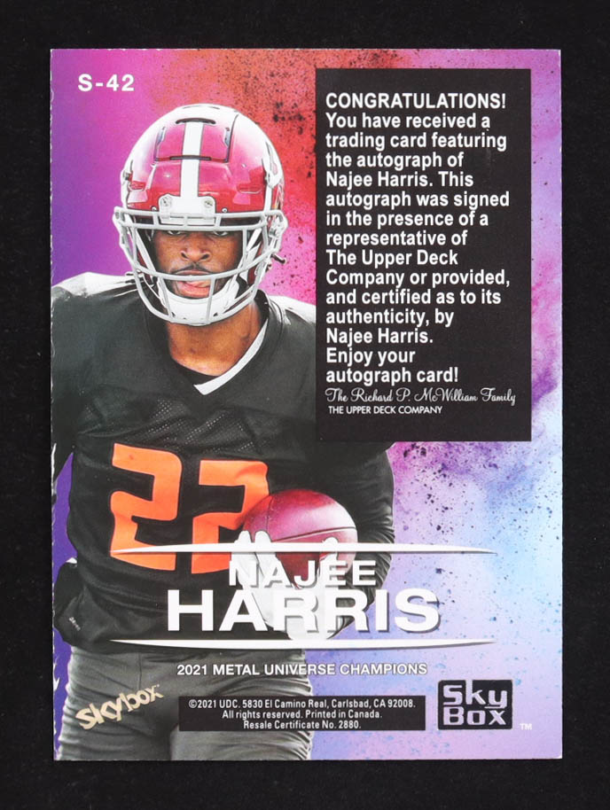 Najee Harris 2021 Metal Universe Champions Skybox Premium Gold Autograph #S42 RC