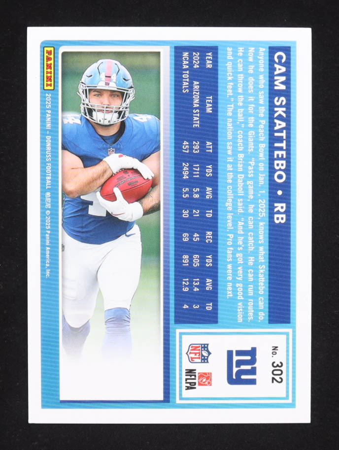 Cam Skattebo 2025 Donruss Press Proof Purple #302 RR RC