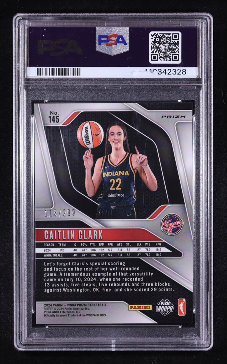 Caitlin Clark 2024 Panini WNBA Red Prizm #145 RC #113/299 (PSA 9)