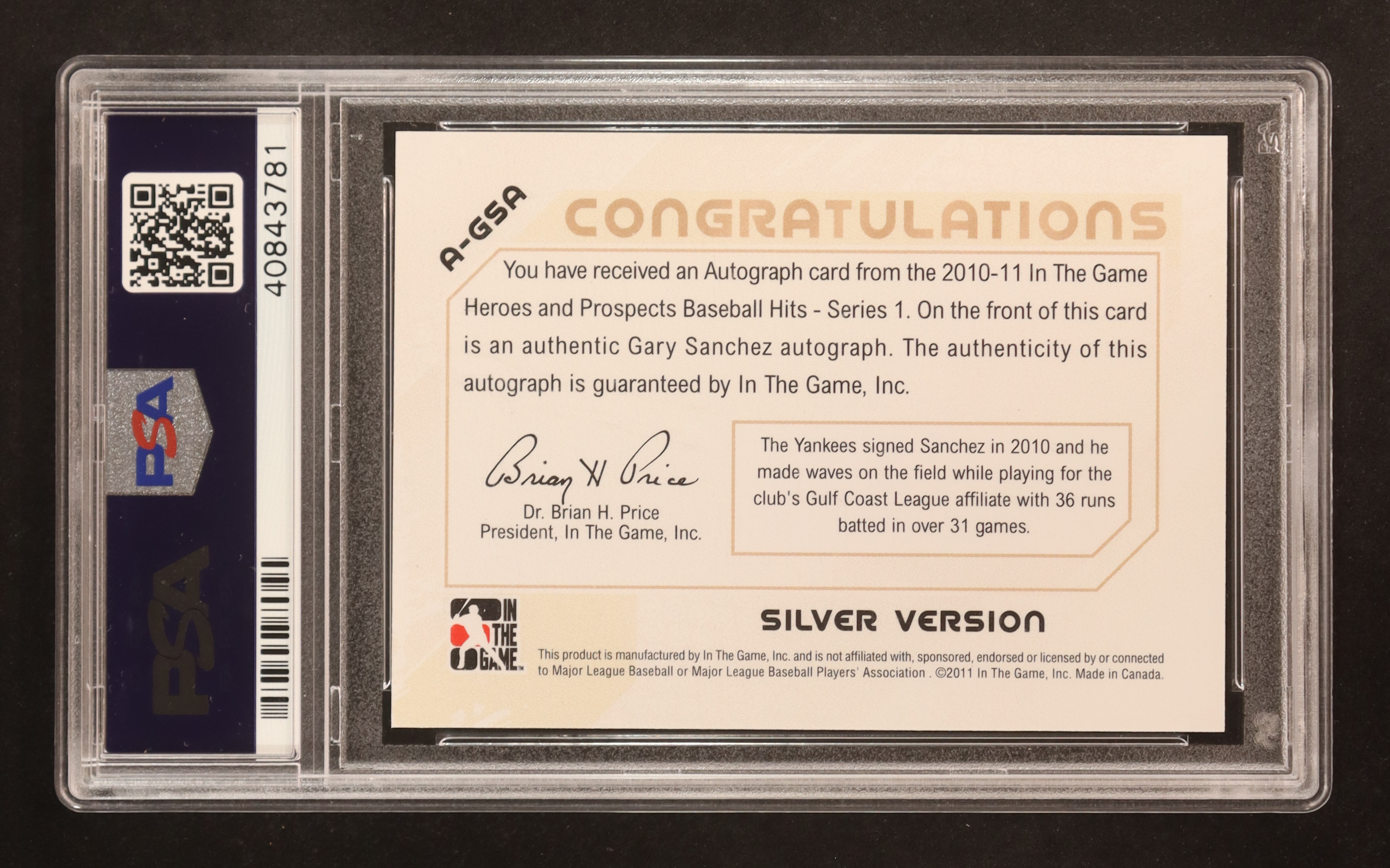 Gary Sanchez 2011 ITG Heroes and Prospects Full Body Autographs Silver #GSA RC (PSA 10)