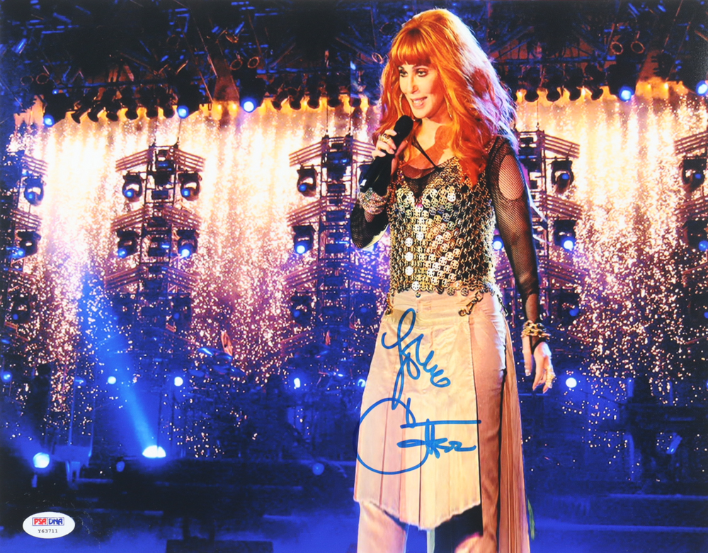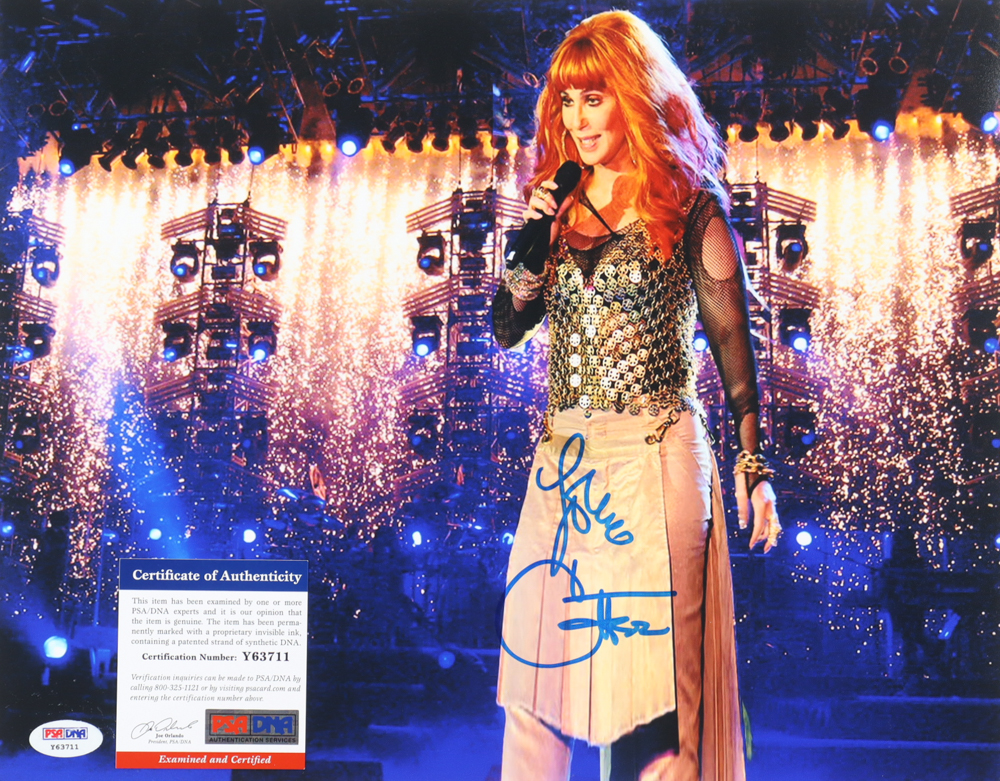 Photo measures 11" x 14" in size and has been hand-signed by Cher.