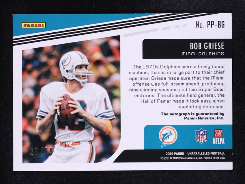 Bob Griese 2019 Panini Unparalleled Pioneer Penmanship #30 #28/99