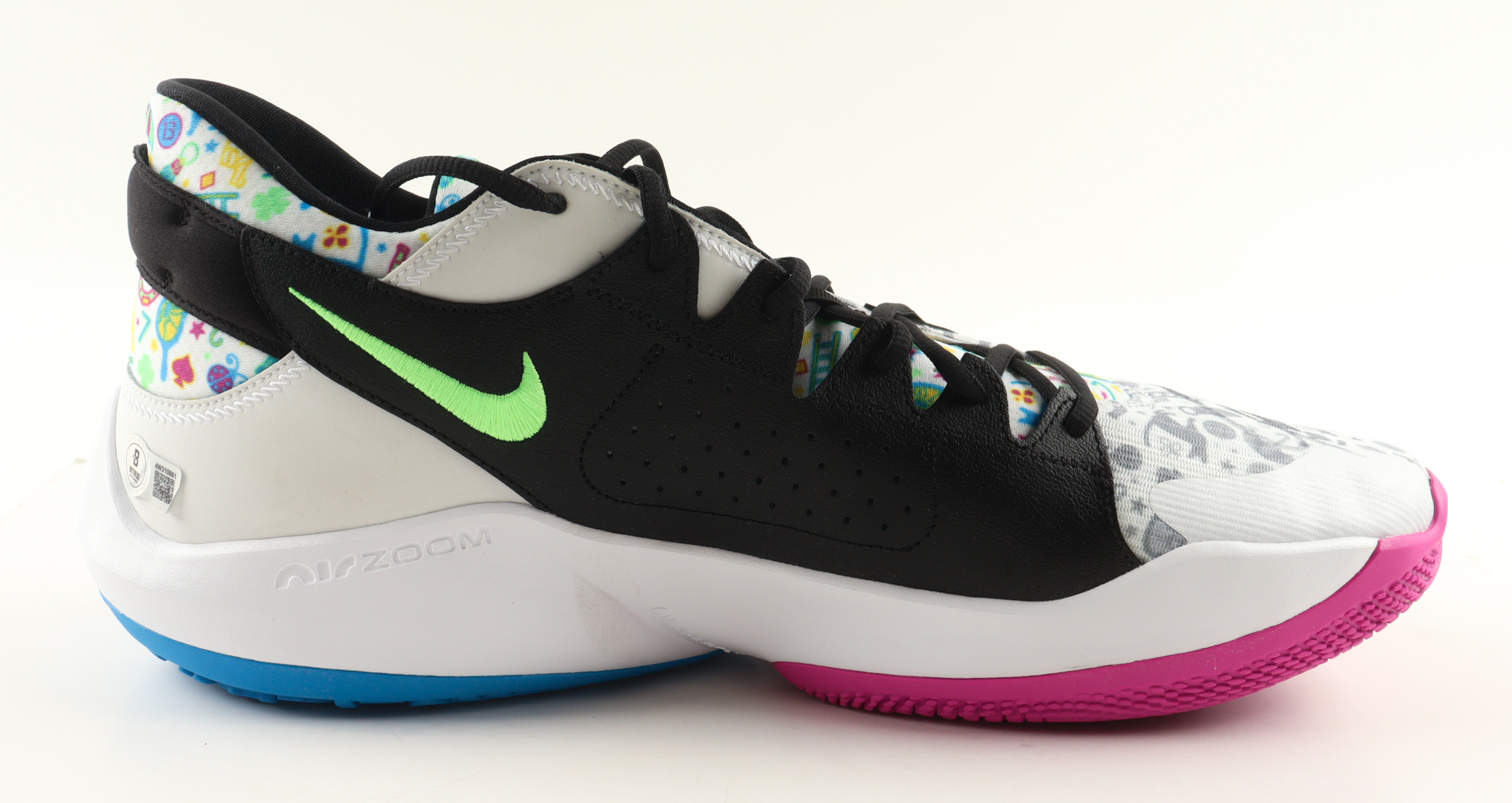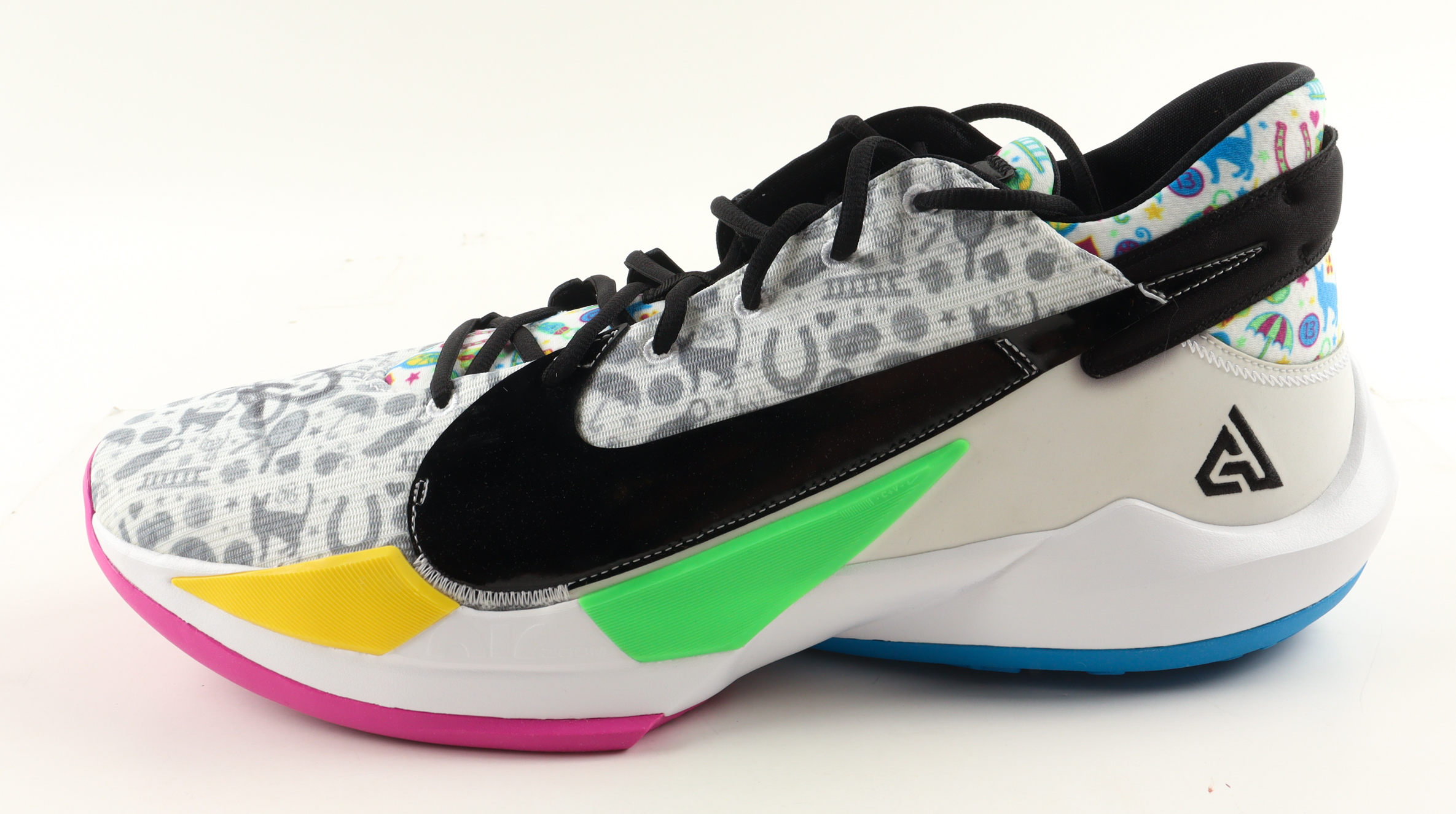 Nike Zoom Freak 2 "Letter Bro" Basketball Shoe has been hand-signed by Giannis Antetokounmpo (Milwaukee Bucks).