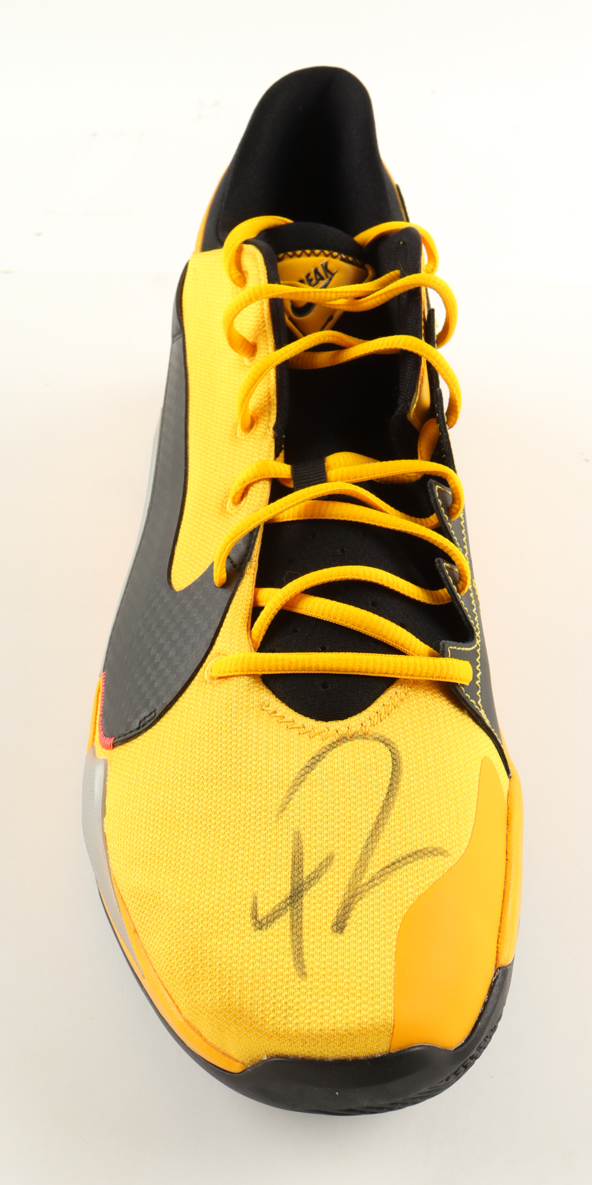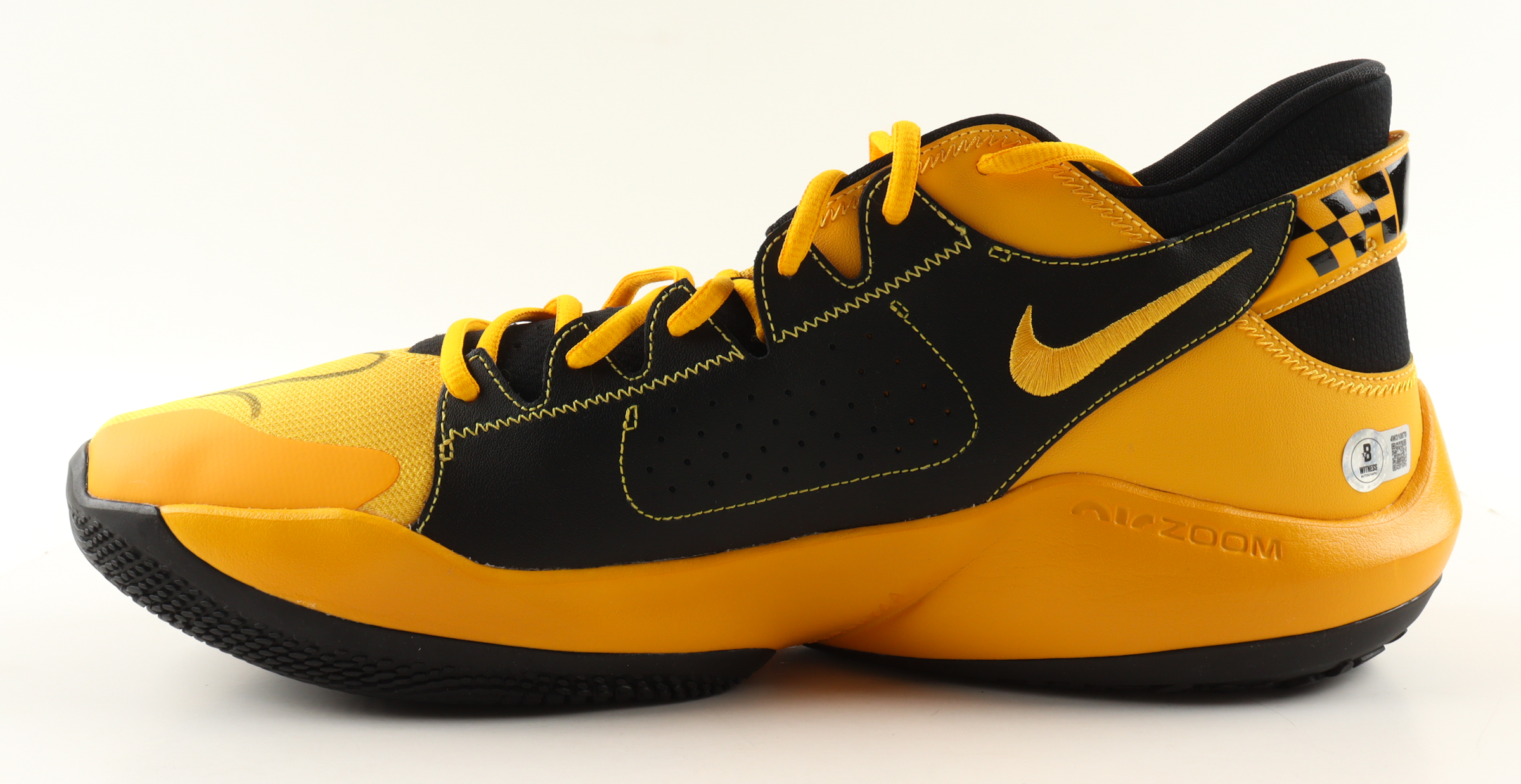Nike Zoom Freak 2 "Taxi" Basketball Shoe has been hand-signed by Giannis Antetokounmpo (Milwaukee Bucks).