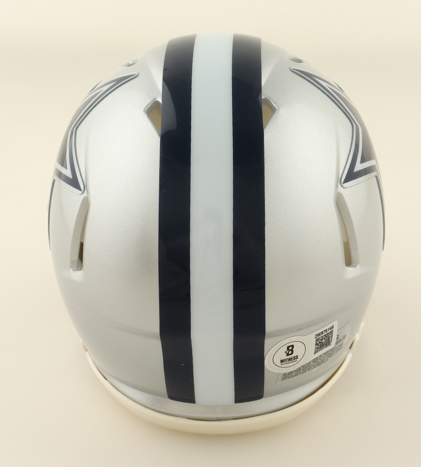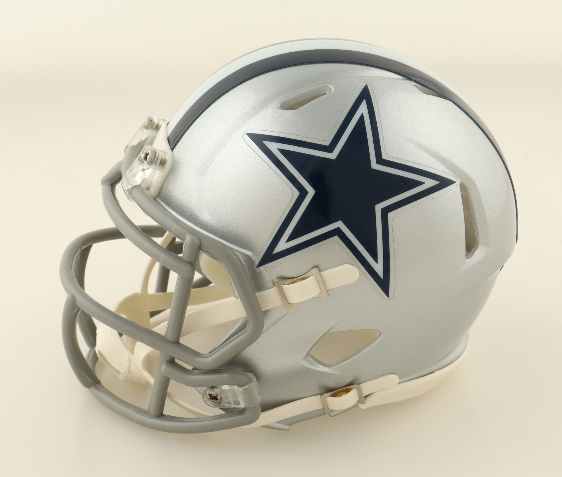 Riddell Dallas Cowboys Speed mini helmet has been hand-signed by Jimmy Johnson (HOF).