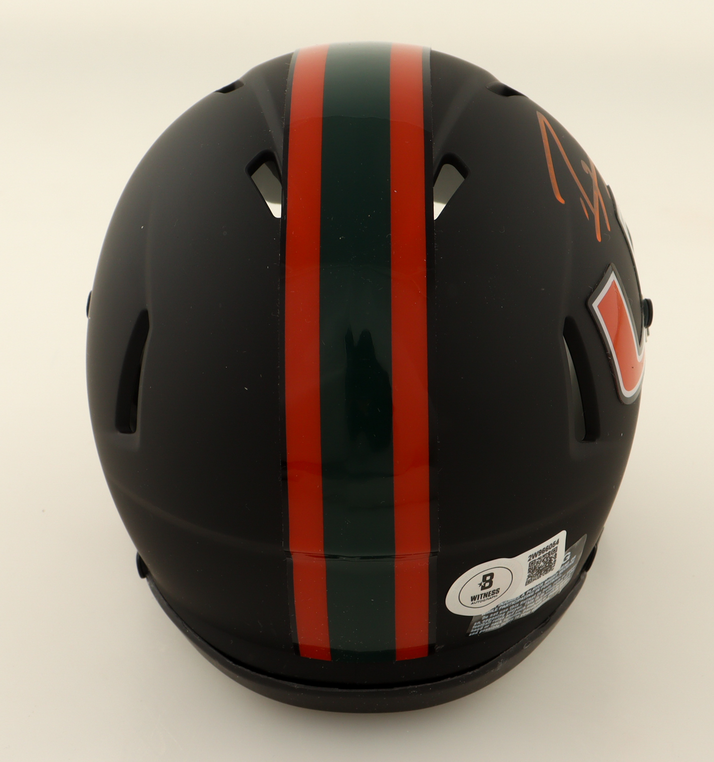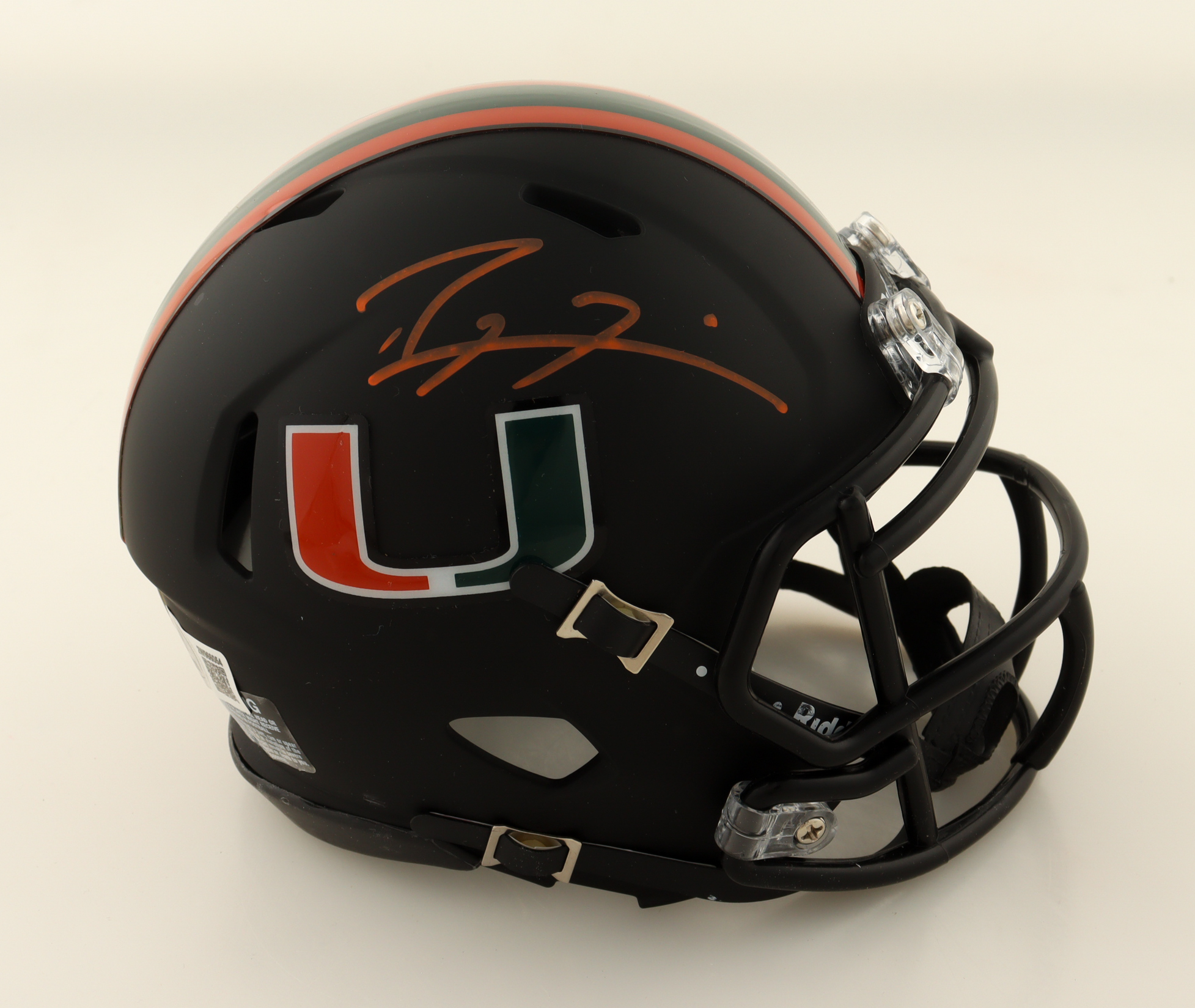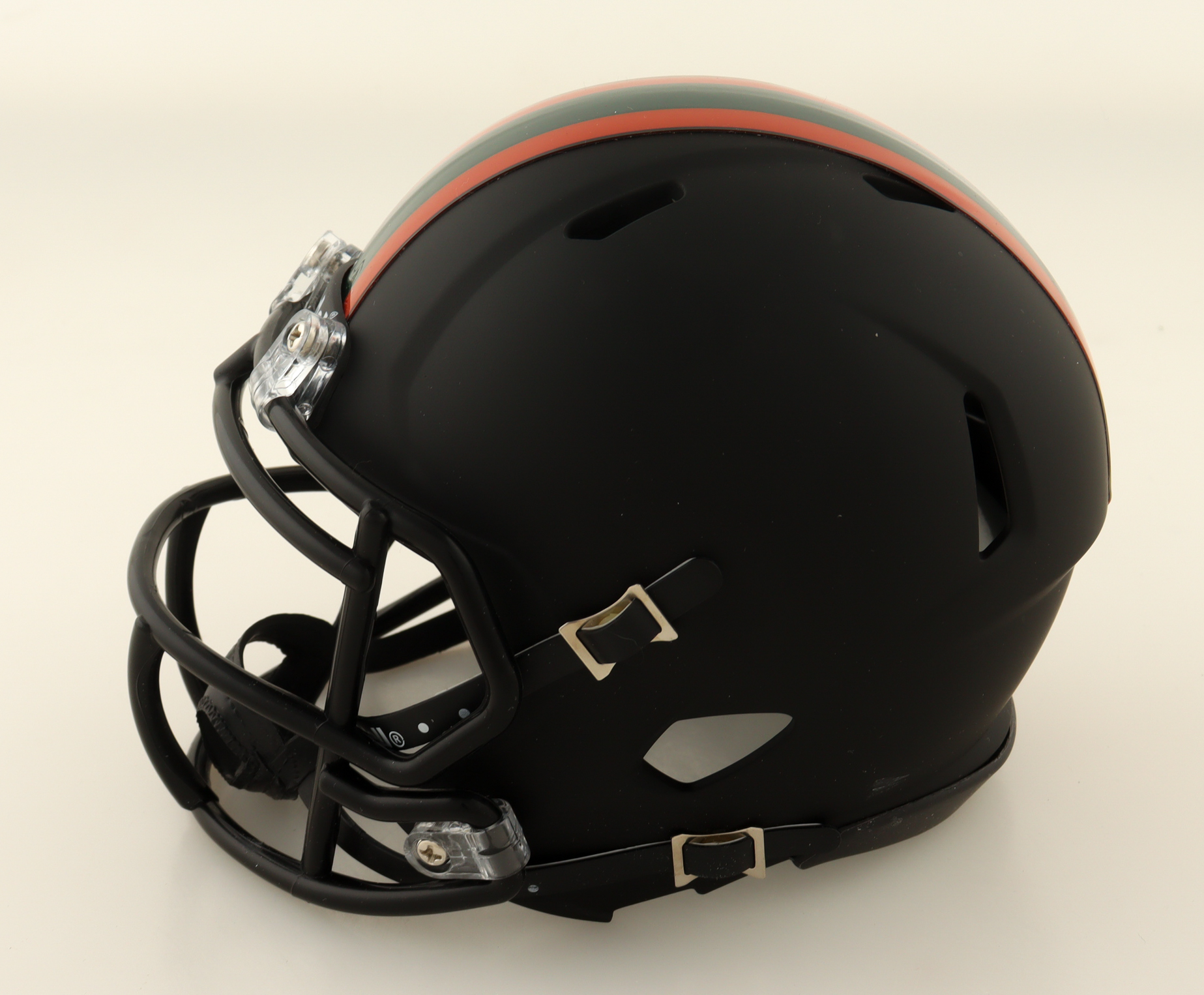 Riddell Miami Hurricanes Matte Black Speed mini helmet. Hand-signed by Ray Lewis (HOF).