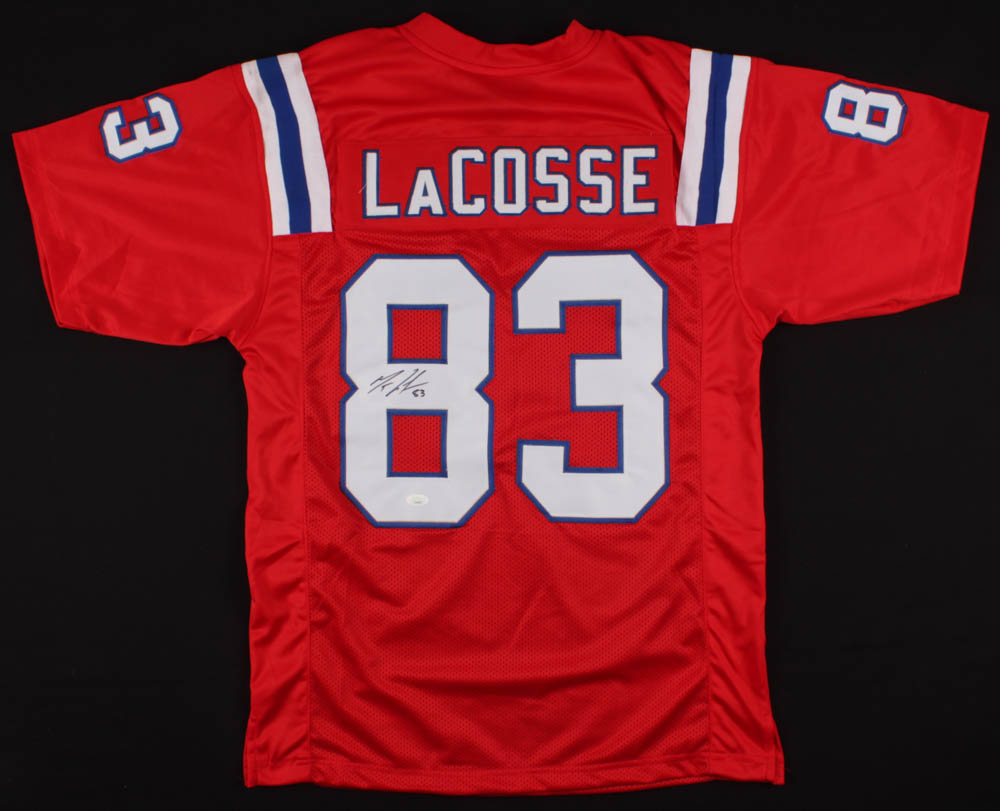 Custom on-field style jersey. Everything is sewn on, size XL. Hand-signed in black felt-tip pen by Matt LaCosse.