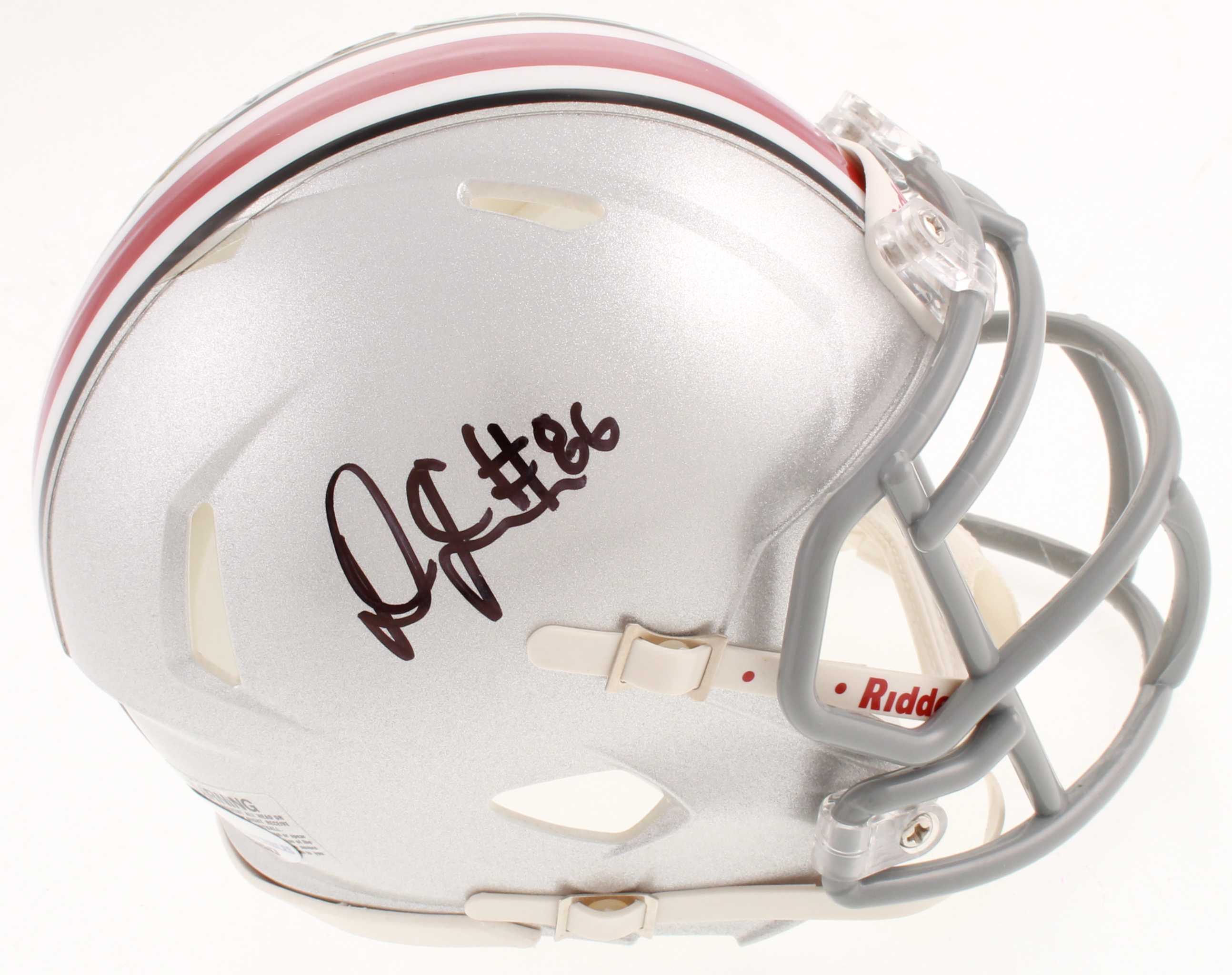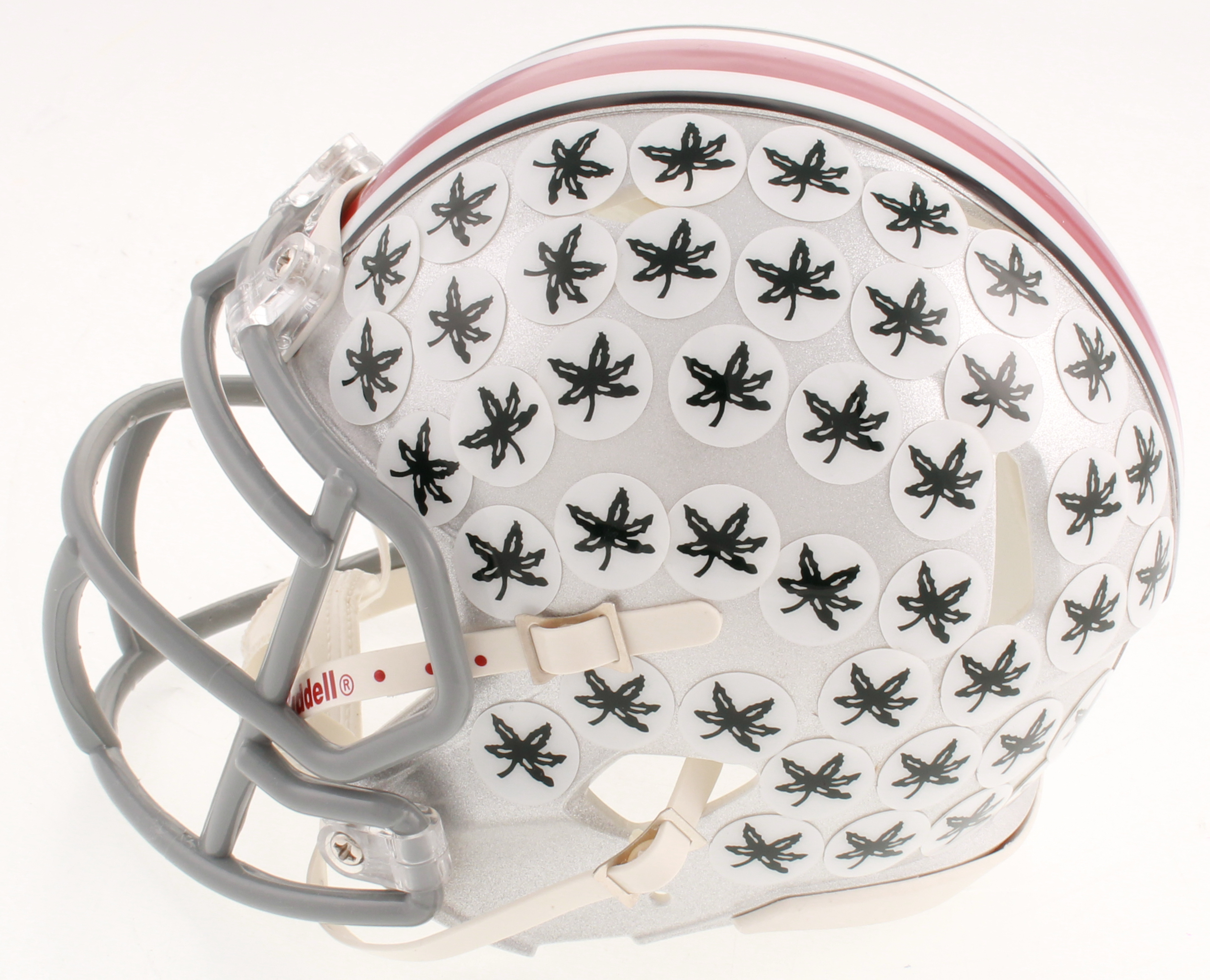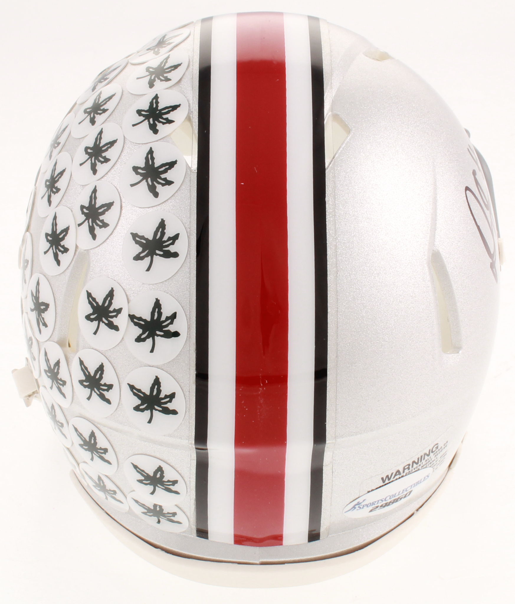 Riddell Ohio State Buckeyes mini speed helmet has been hand-signed in black felt-tip pen by Dre'Mont Jones.