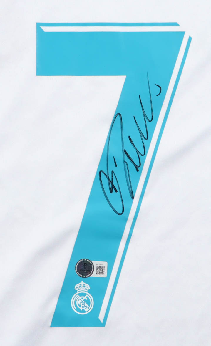Adidas jersey with everything pressed on, size L. Hand-signed by Cristiano Ronaldo (Real Madrid FC). Please note, there is stains on the back of the jersey.