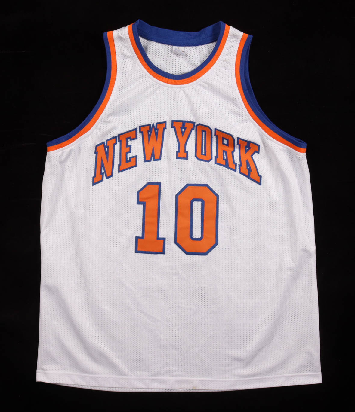 Custom jersey with everything sewn on, size XL. Hand-signed and inscribed by Walt Frazier (HOF). Please note, there is a stain at the bottom of the jersey. See photos regarding the condition of the item.