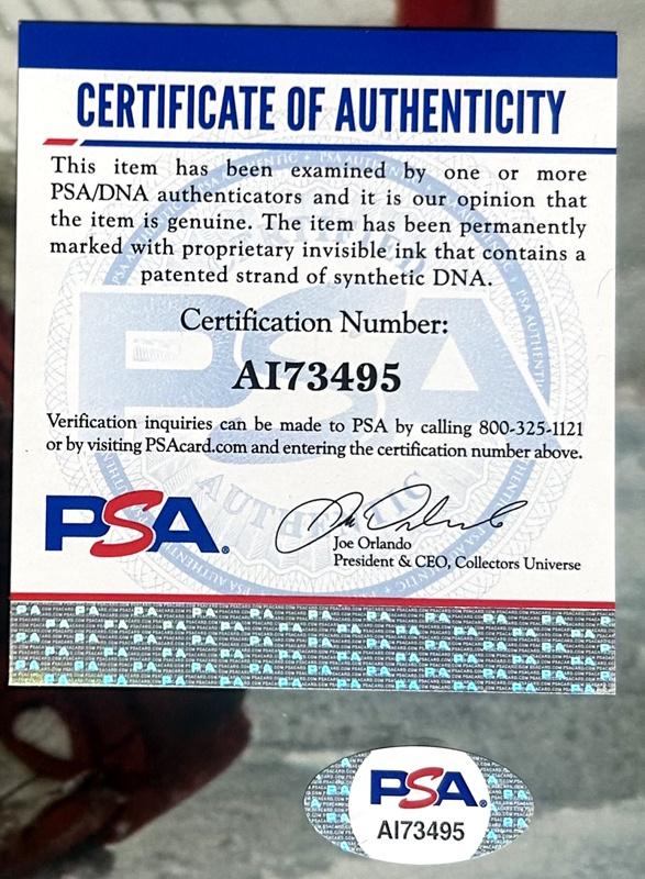 The autograph includes an official PSA/DNA hologram and matching COA for authenticity purposes.