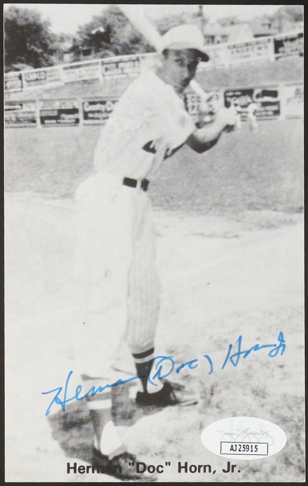 Hermin Horn Jr. Signed Kansas City Monarchs 4x6 Photo (JSA)