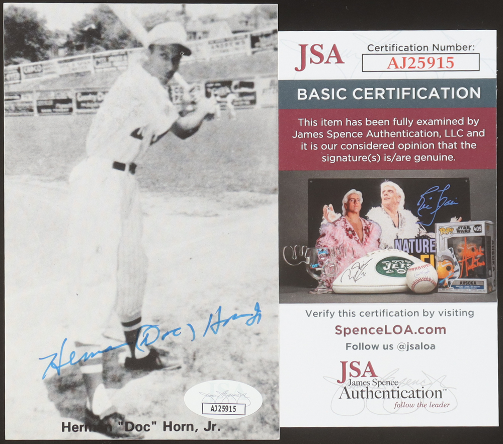 Photograph measures 4" x 6" in size and has been hand-signed by Hermin Horn Jr.