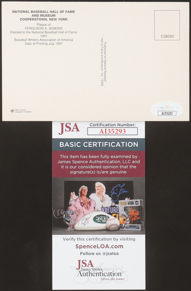 Fergie Jenkins Signed Baseball Hall of Fame 4x6 Postcard (JSA)