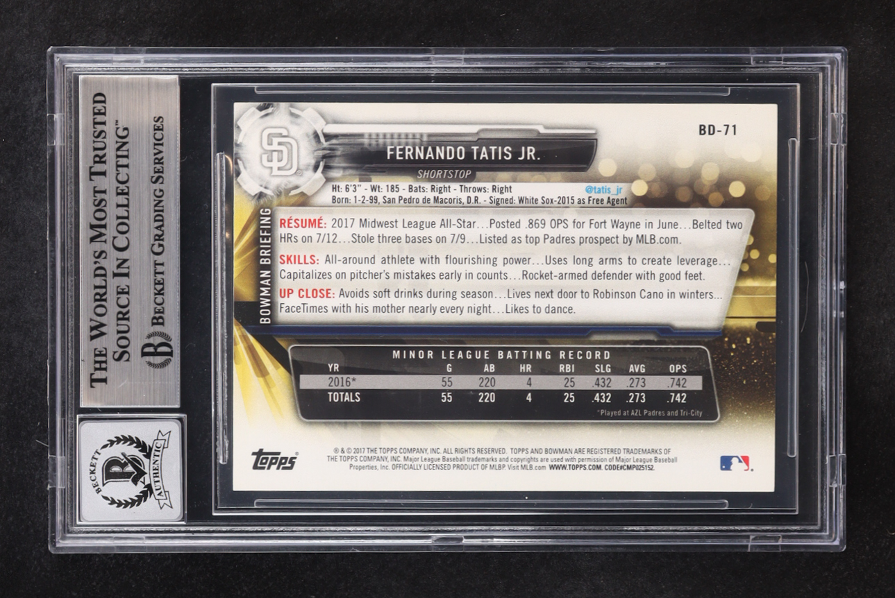 Fernando Tatis Jr. Signed 2017 Bowman Draft #BD71 55 RC (BGS | Auto 10)