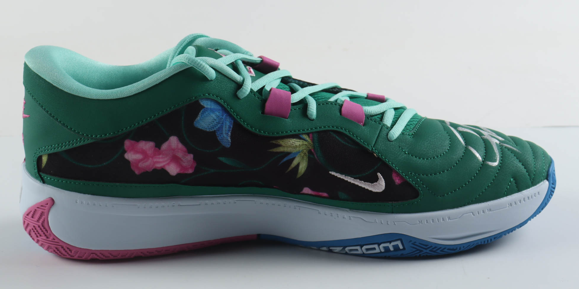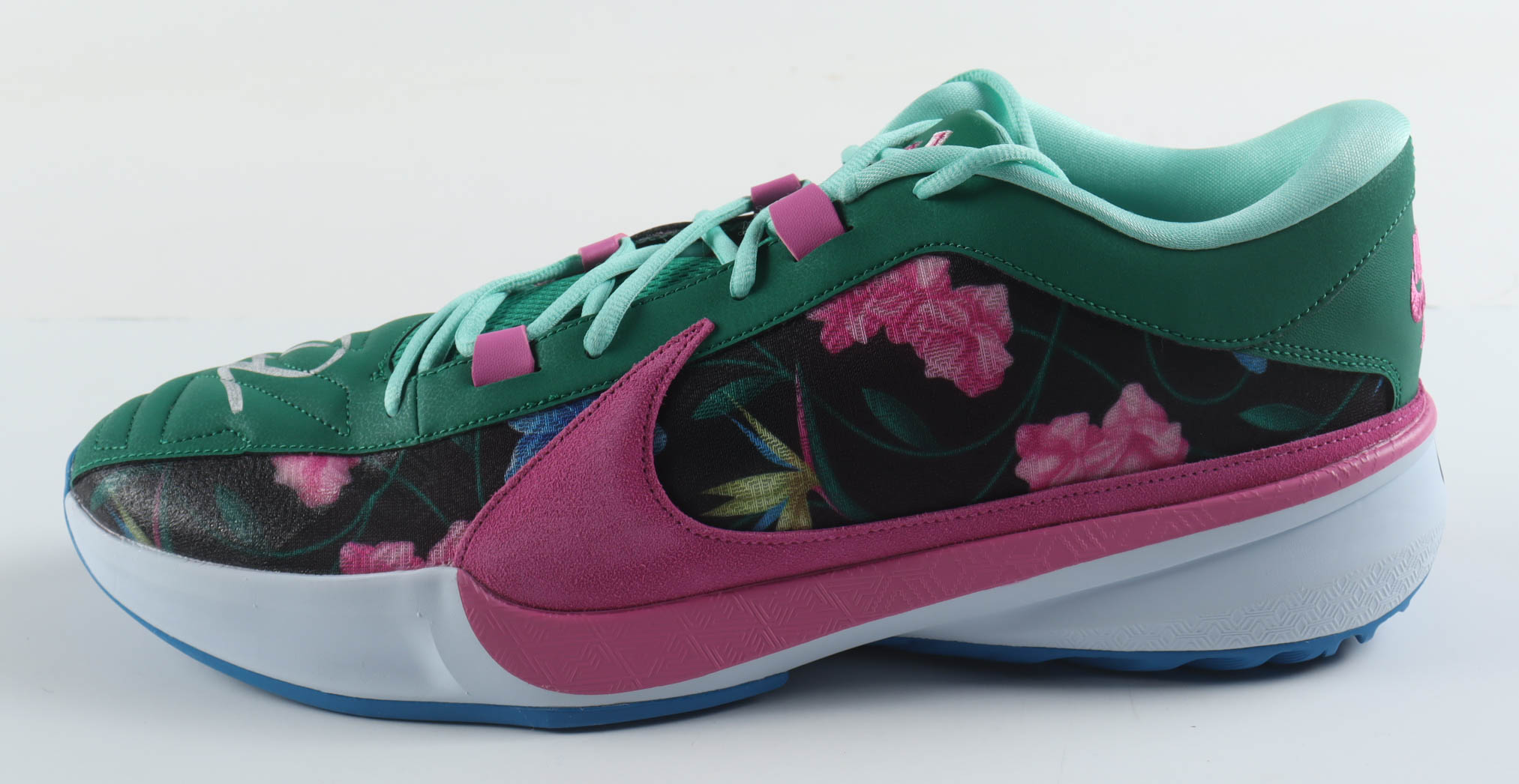 Nike Zoom Freak 2 "Flowers" Basketball Shoe has been hand-signed by Giannis Antetokounmpo (Milwaukee Bucks).