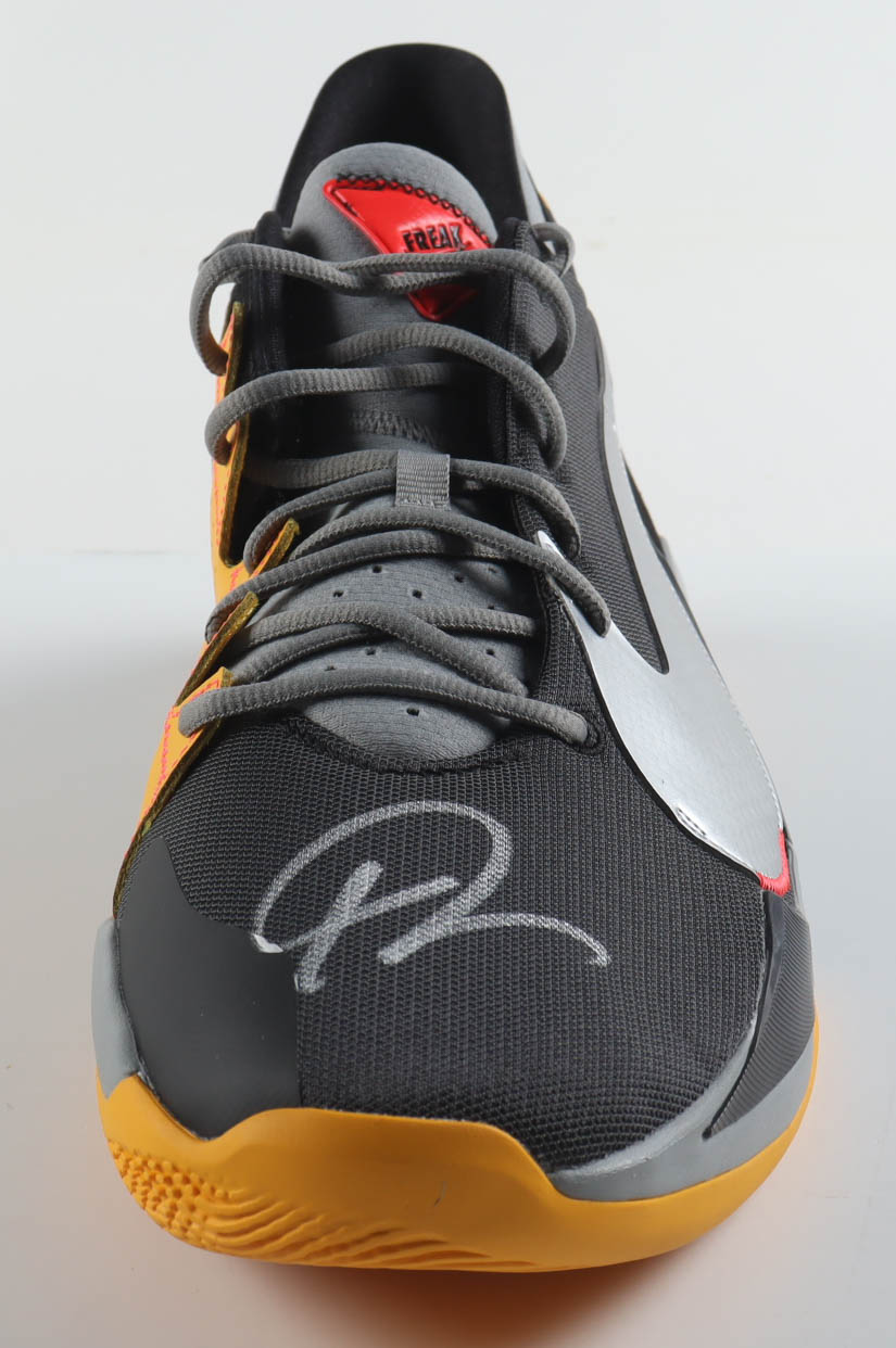 Nike Zoom Freak 2 "Taxi" Basketball Shoe has been hand-signed by Giannis Antetokounmpo (Milwaukee Bucks).