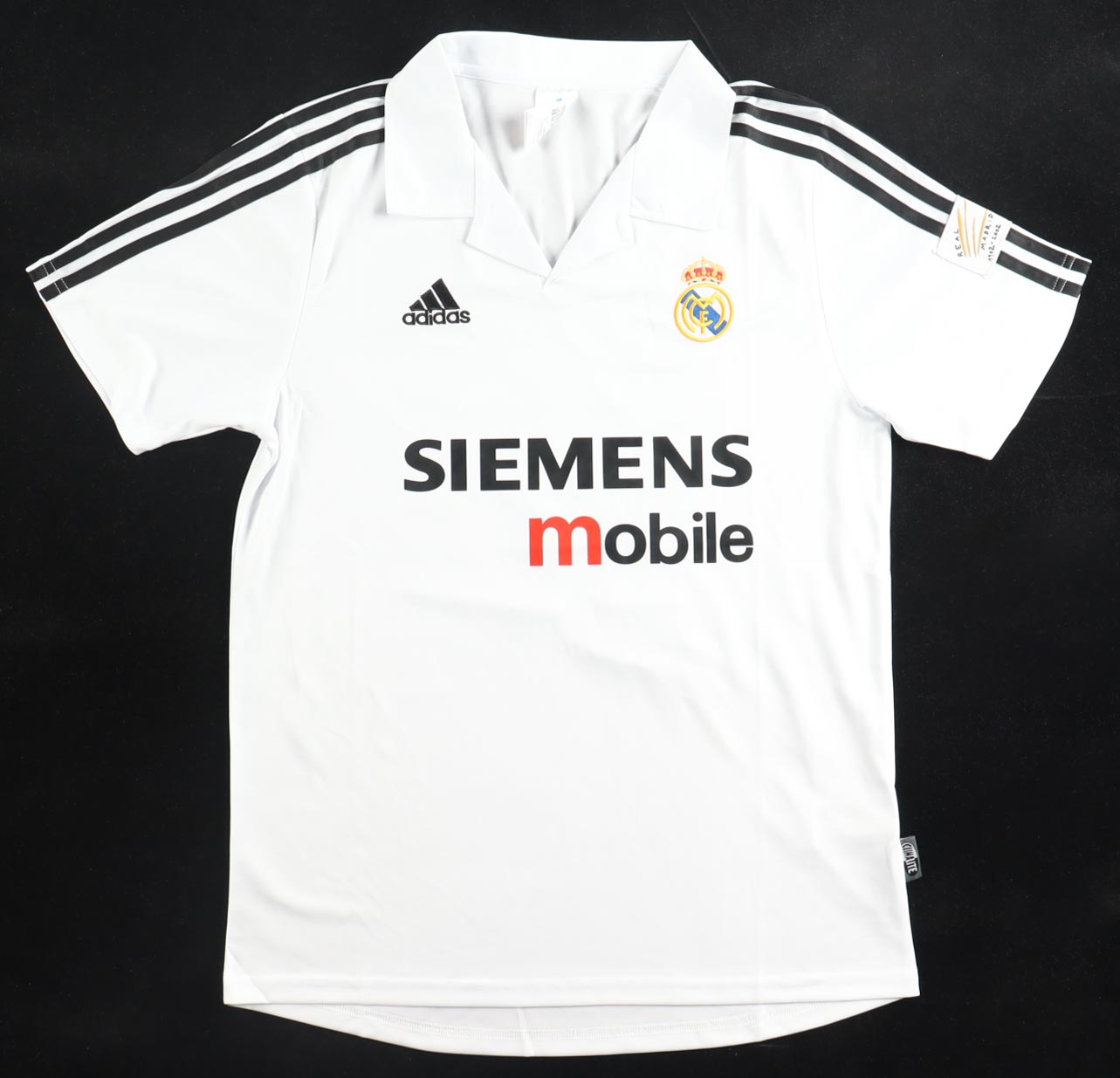 Adidas jersey with everything pressed on, size L. Hand-signed by Luis Figo (Real Madrid F.C).